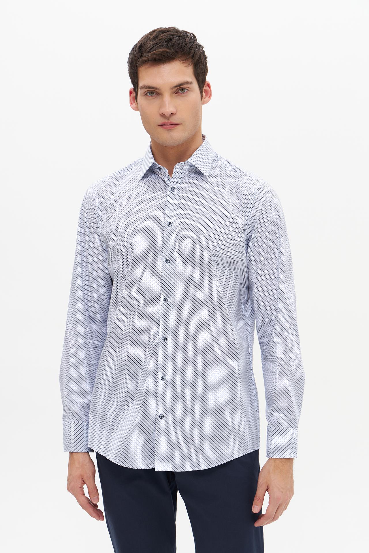 Изысканная мужская рубашка с длинным рукавом от Venti, выполненная из 100% хлопка, станет незаменимым элементом гардероба. Приятная на ощупь ткань обеспечит комфорт в течение всего дня. Узор в мелкий принт придает модели особую элегантность и универсальность, позволяя сочетать её как с классическими брюками, так и с джинсами.