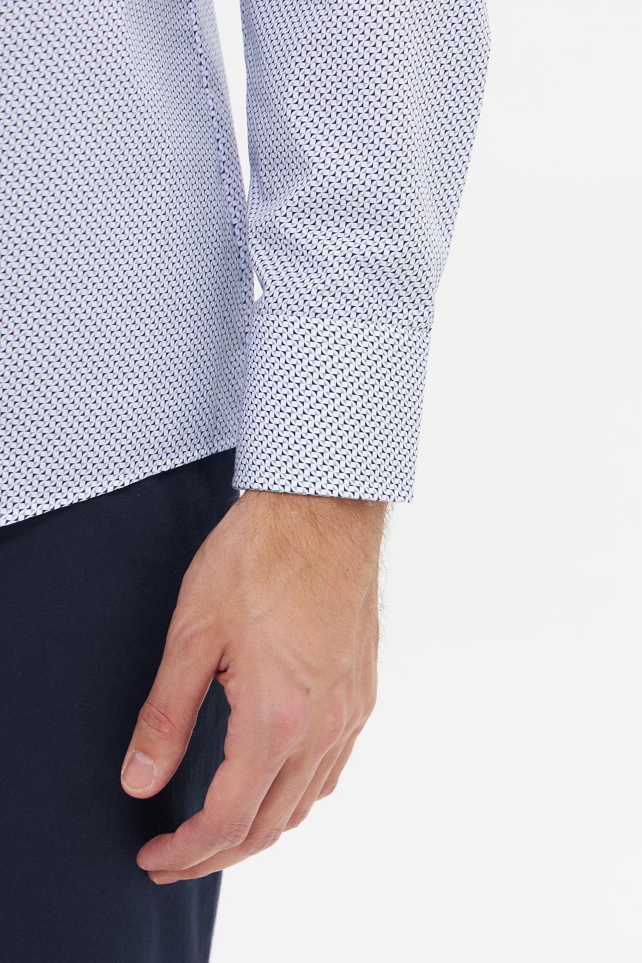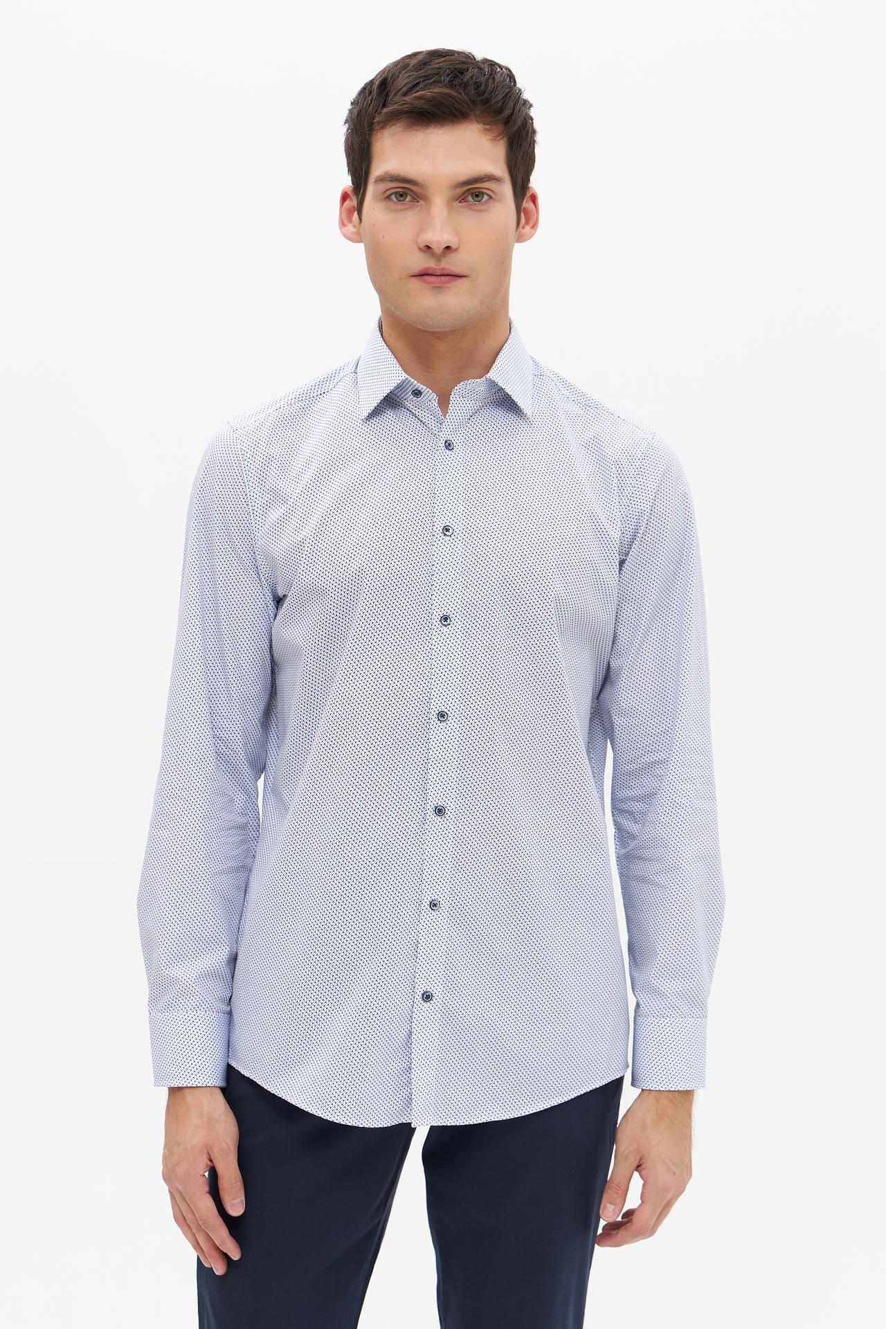 - Универсальный дизайн: Мелкий принт делает рубашку подходящей для различных случаев, от офиса до неформальных встреч.