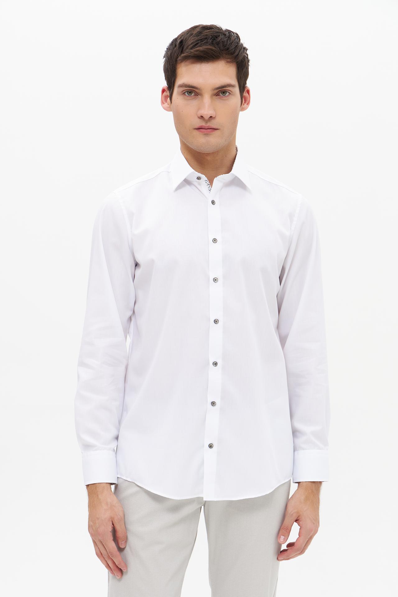Классическая мужская рубашка белого цвета с длинным рукавом от бренда Venti - идеальный выбор для создания элегантного и стильного образа. Изготовлена из 100% хлопка, обеспечивающего максимальный комфорт и приятное ощущение на коже. Подойдет как для офиса, так и для особых случаев.