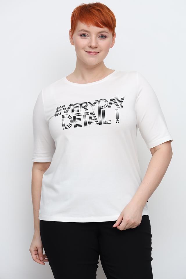 Модель имеет прямой крой и короткие рукава, что обеспечивает свободу движений и комфорт в жаркую погоду. Футболка украшена стильным черным принтом с надписью "EVERYDAY DETAIL!".