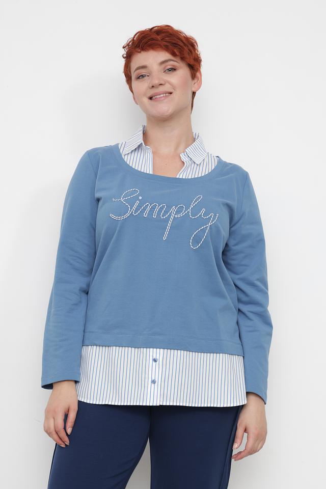 Голубой пуловер от Via Appia с вышивкой "Simply" – стильная и комфортная модель из хлопка с добавлением эластана. Удобный крой и мягкий материал делают этот пуловер идеальным выбором для повседневной носки. Состав: хлопок 95%, эластан 5%