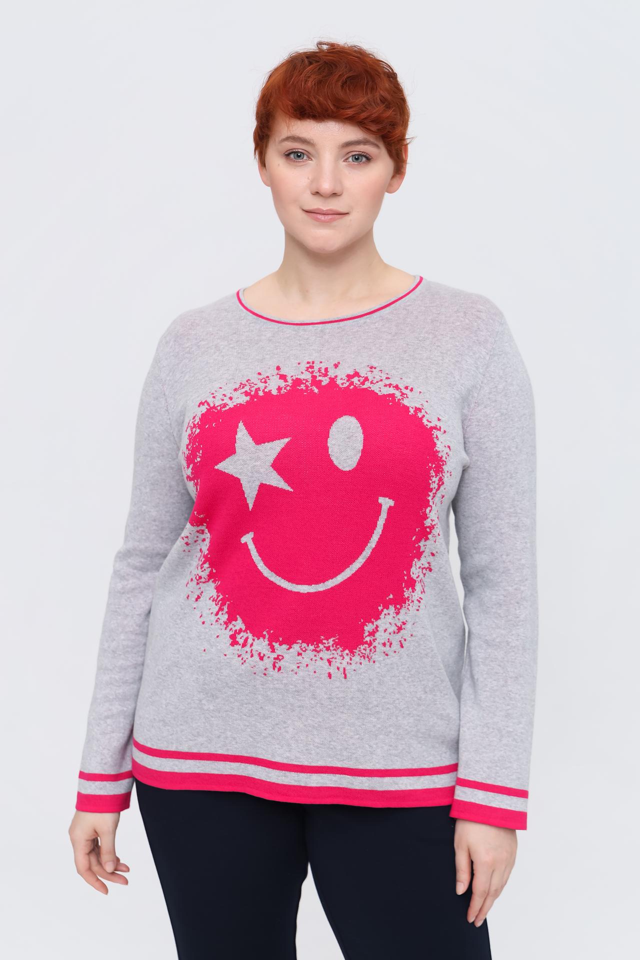 Стильный пуловер от Via Appia станет ярким акцентом в вашем гардеробе. Модель выполнена из 100% хлопка, что обеспечивает комфорт и приятные тактильные ощущения в течение всего дня. Оригинальный дизайн с крупным принтом-смайликом в насыщенном малиновом цвете добавляет игривости и подчеркивает индивидуальность.