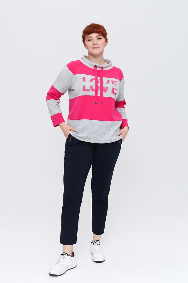 Женский пуловер Via Appia фуксии и серого цвета с яркой надписью LOVE – стильное и комфортное решение для повседневного образа. Модель выполнена из мягкого трикотажа с добавлением вискозы и эластана, что обеспечивает приятные тактильные ощущения и хорошую посадку по фигуре. Состав: вискоза 49%, полиэстер 43%, эластан 8%