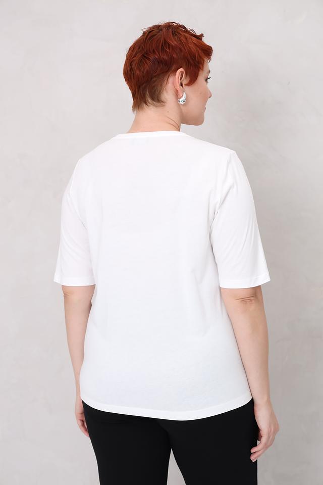 Белая футболка Via Appia DUE женского кроя с ярким принтом. Модель выполнена из мягкого и приятного к телу сочетания хлопка и модала, обеспечивая комфорт в носке. Стильный дизайн и свободный крой делают эту футболку отличным выбором для повседневного образа. Состав: хлопок 50%, модал 50%