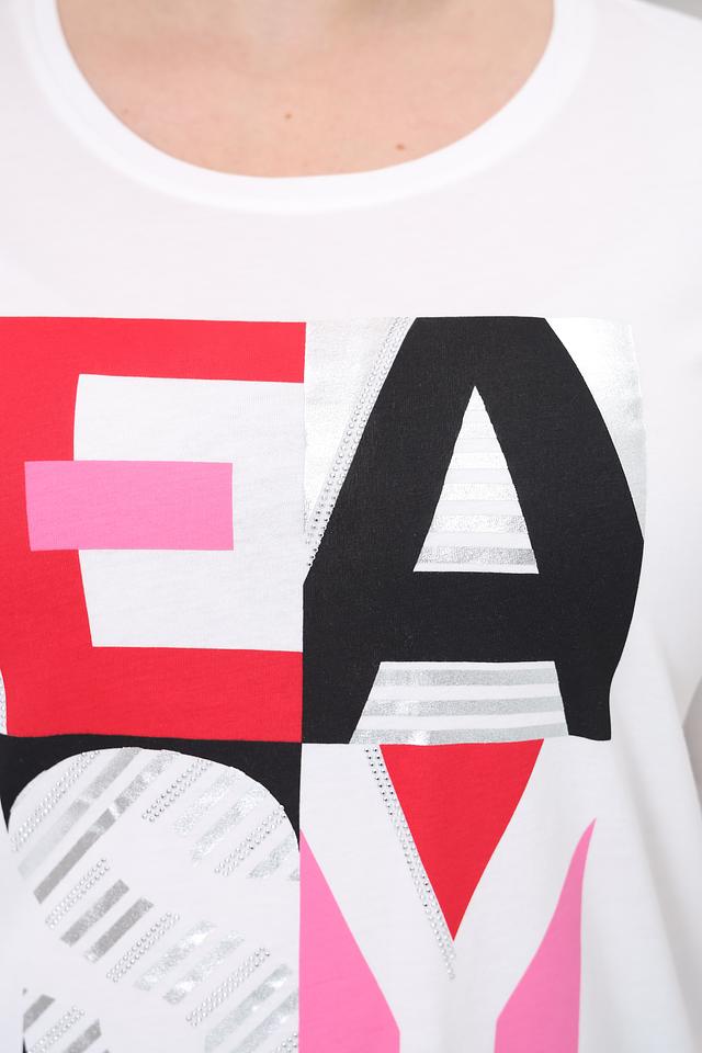 Футболка имеет свободный крой, который не сковывает движений и позволяет создать расслабленный образ. Выразительный принт с надписью "EASY" в ярких цветах – красный, розовый и серый – добавляет оригинальности и стиля.