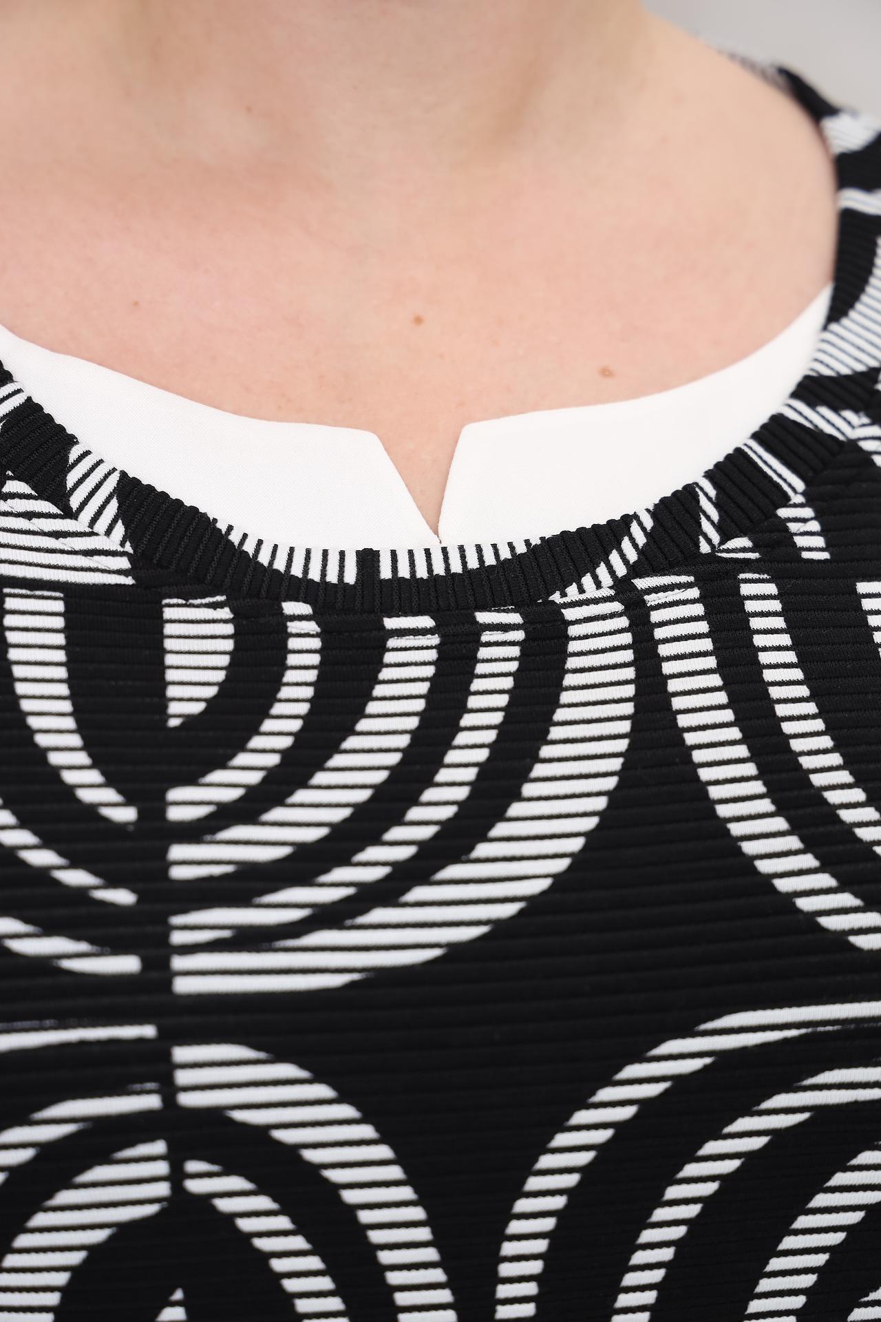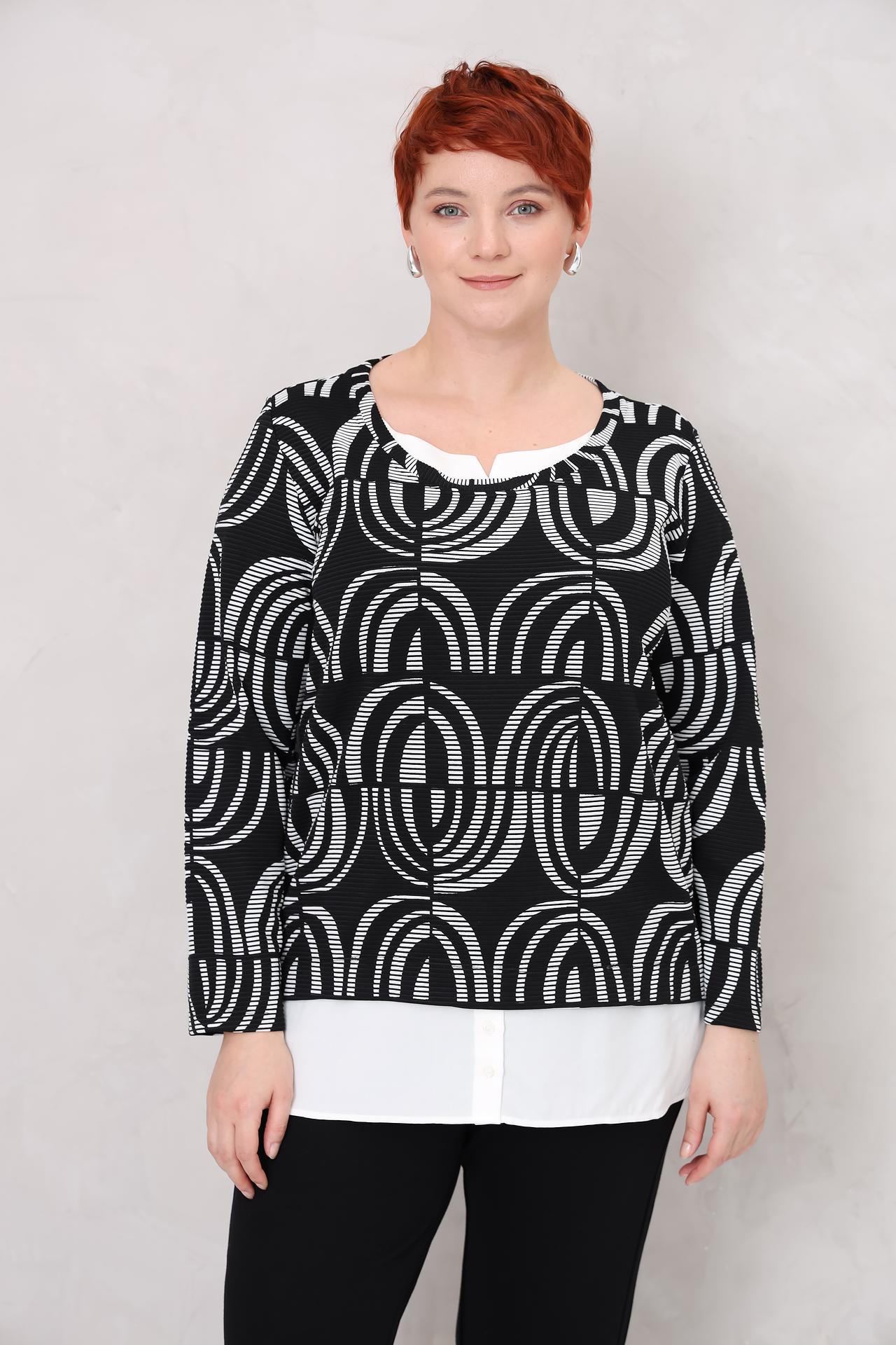 - Дизайн: Уникальный графический принт в черно-белой гамме подчеркнет вашу индивидуальность. Круглый вырез горловины и длинные рукава обеспечивают классический силуэт.