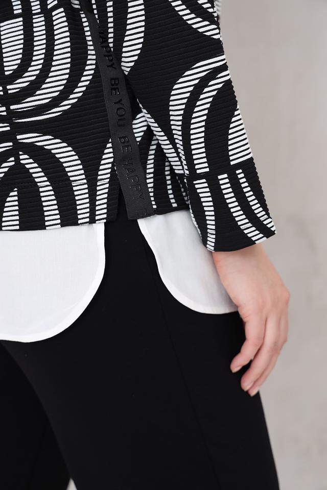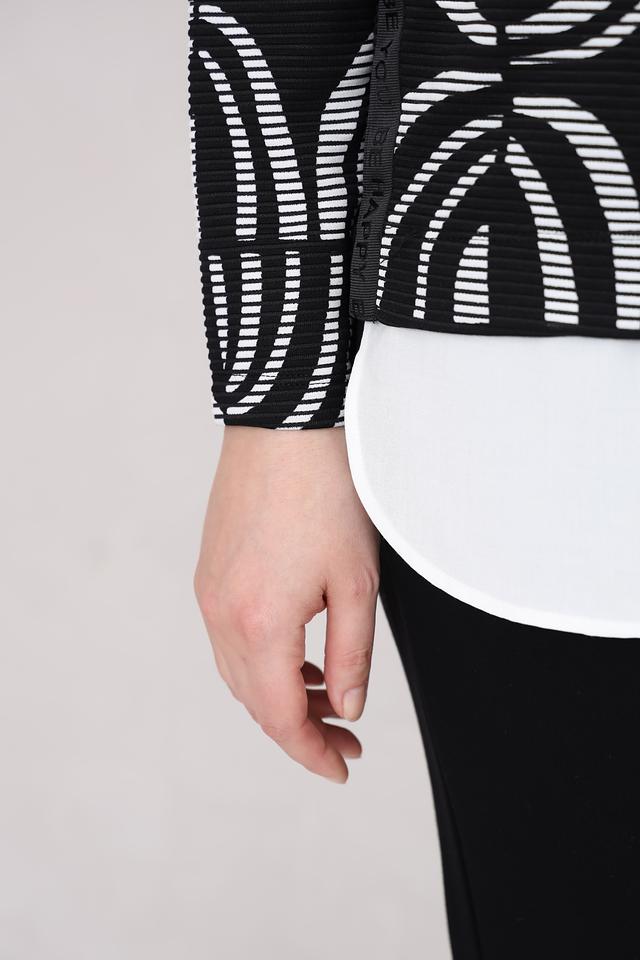 Этот стильный пуловер от Via Appia станет отличным дополнением к вашему гардеробу. Пуловер выполнен в чёрно-белой цветовой гамме и украшен выразительным геометрическим принтом, который придает ему современный вид.