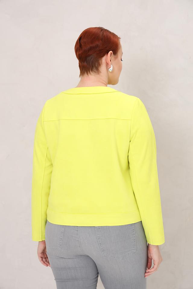 Этот жакет от Via Appia станет ярким акцентом вашего образа. Модель выполнена в актуальном лаймовом цвете и имеет прямой крой, который подходит для разных типов фигур.