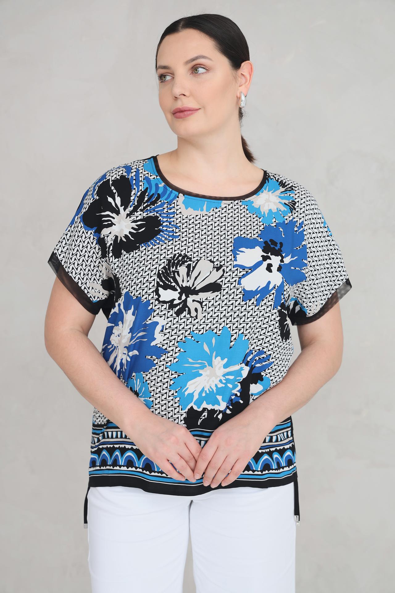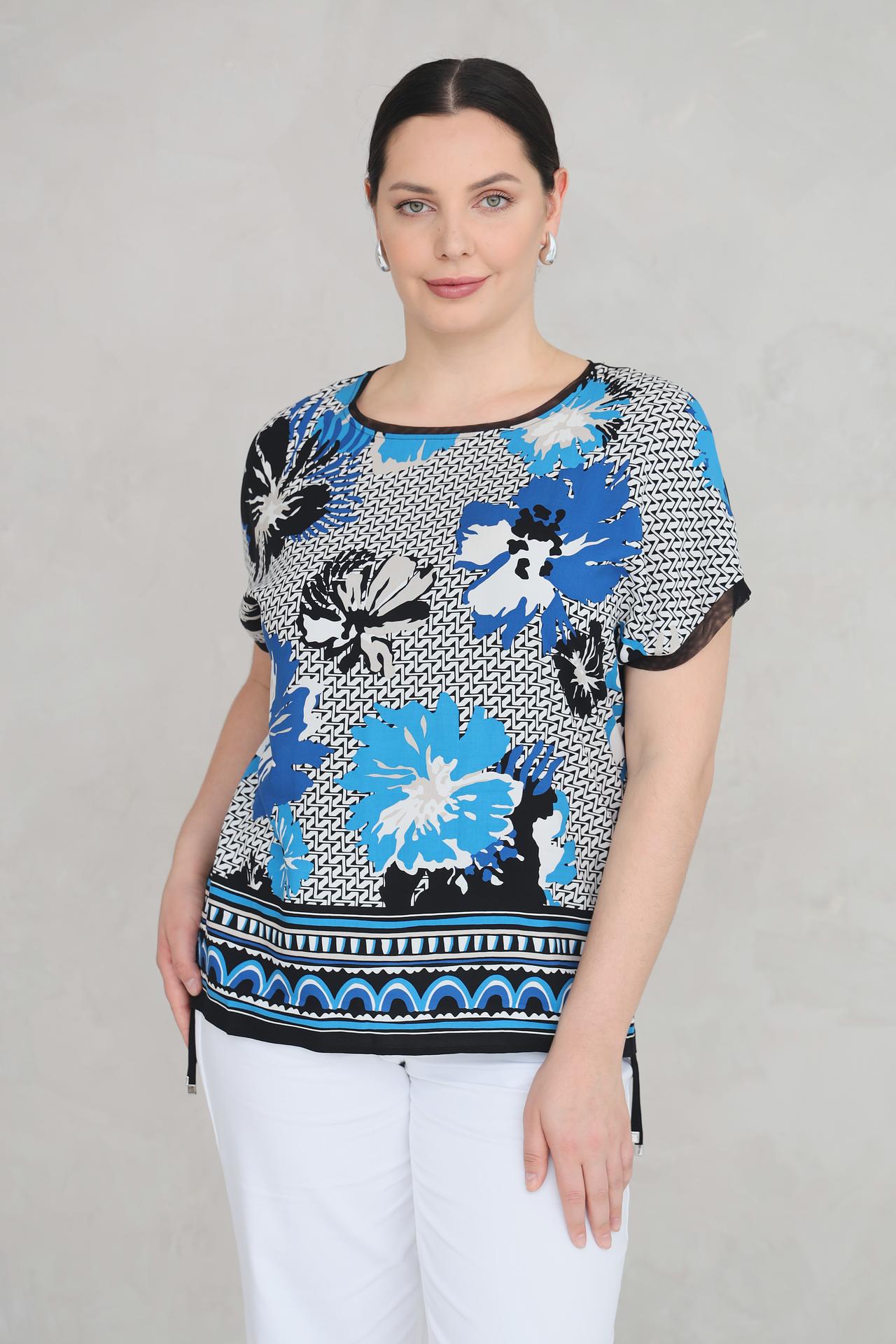 Освежите свой гардероб элегантной блузой от Via Appia с ярким цветочным принтом. Эта стильная блузка, выполненная из мягкой и приятной к телу вискозы с добавлением эластана, обеспечит вам комфорт на протяжении всего дня.