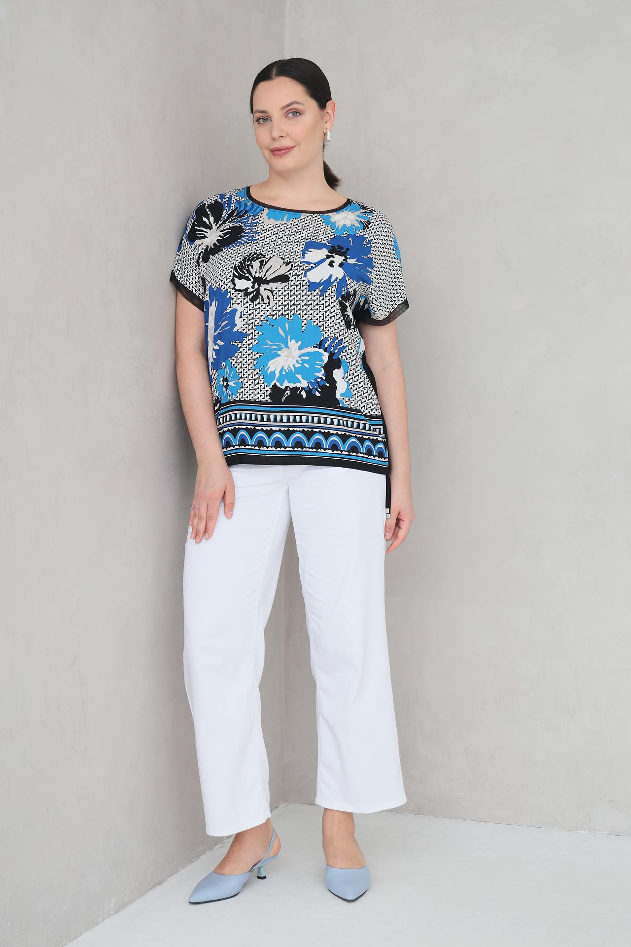 Универсальный дизайн и свободный крой делают эту блузу идеальным выбором для создания разнообразных образов. Она легко сочетается как с классическими брюками, так и с джинсами или юбками. Боковой разрез с декоративными завязками придает оригинальности образу.