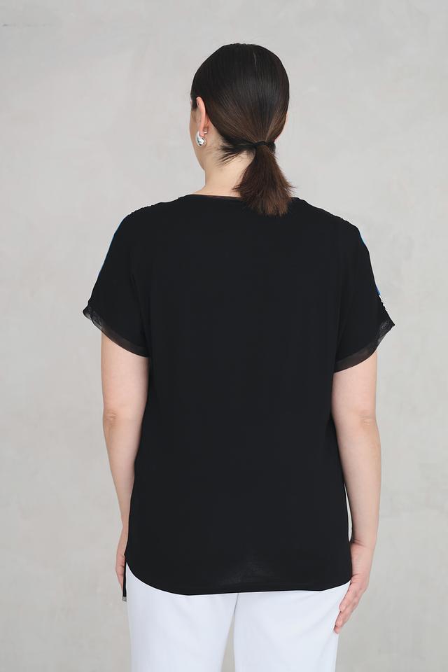 Блуза имеет короткий рукав и свободный крой, что обеспечивает комфорт в жаркую погоду. Округлый вырез горловины и лаконичный дизайн делают ее универсальной для создания различных образов.