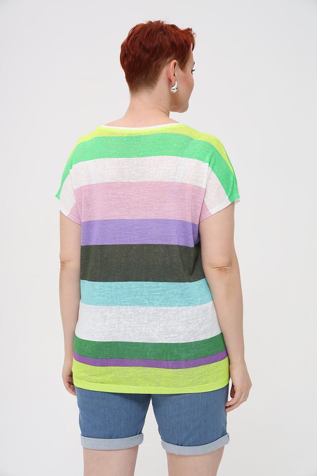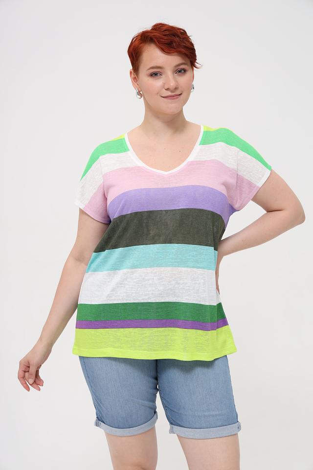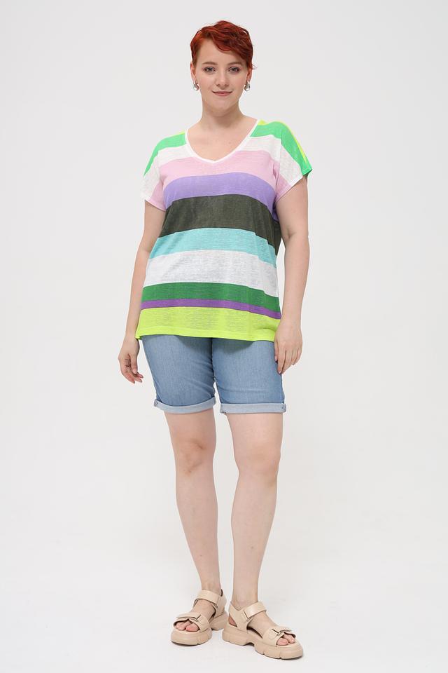 Женская футболка Via Appia выполнена в яркой полосатой расцветке. Модель имеет свободный крой и V-образный вырез, что обеспечивает комфорт и стиль в повседневном образе. Изготовлена из мягкой вискозы с добавлением полиэстера. Состав: вискоза 70%, полиэстер 30%