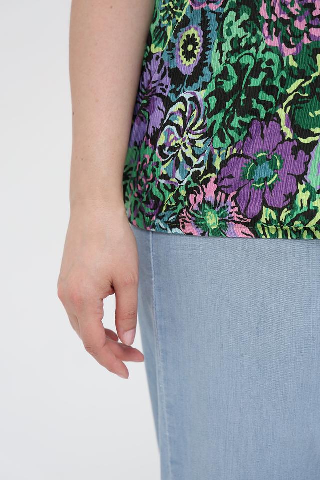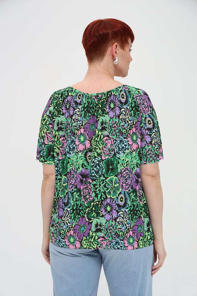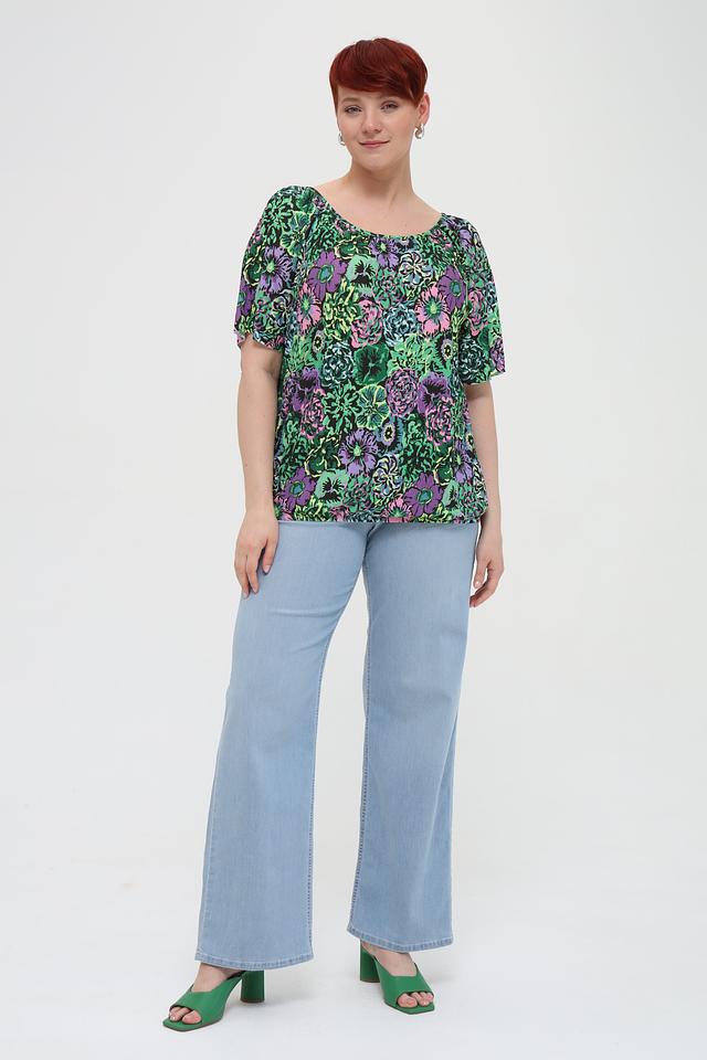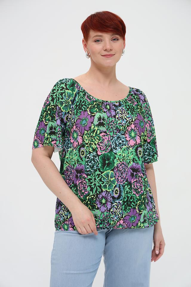 Эта блуза от Via Appia – идеальный выбор для создания стильного и комфортного образа. Блуза выполнена в ярких зеленых тонах и украшена красочным цветочным принтом, который придает ей особую привлекательность.