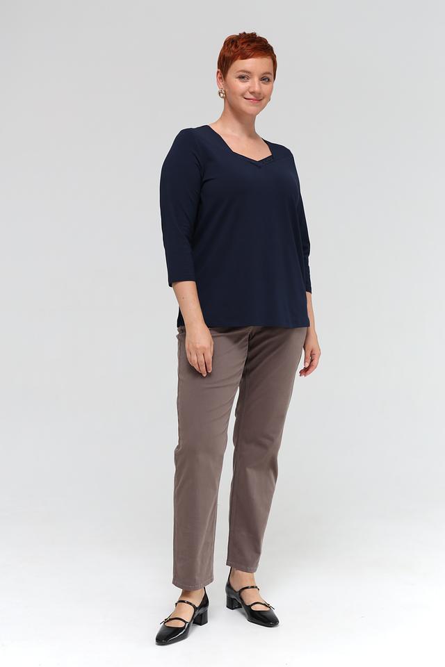 Женская футболка Via Appia DUE темно-синего цвета с рукавом 3/4 и V-образным вырезом. Изготовлена из мягкого и приятного к телу сочетания хлопка и модала, обеспечивающего комфорт в носке. Состав: хлопок 47%, модал 47%, эластан 6%