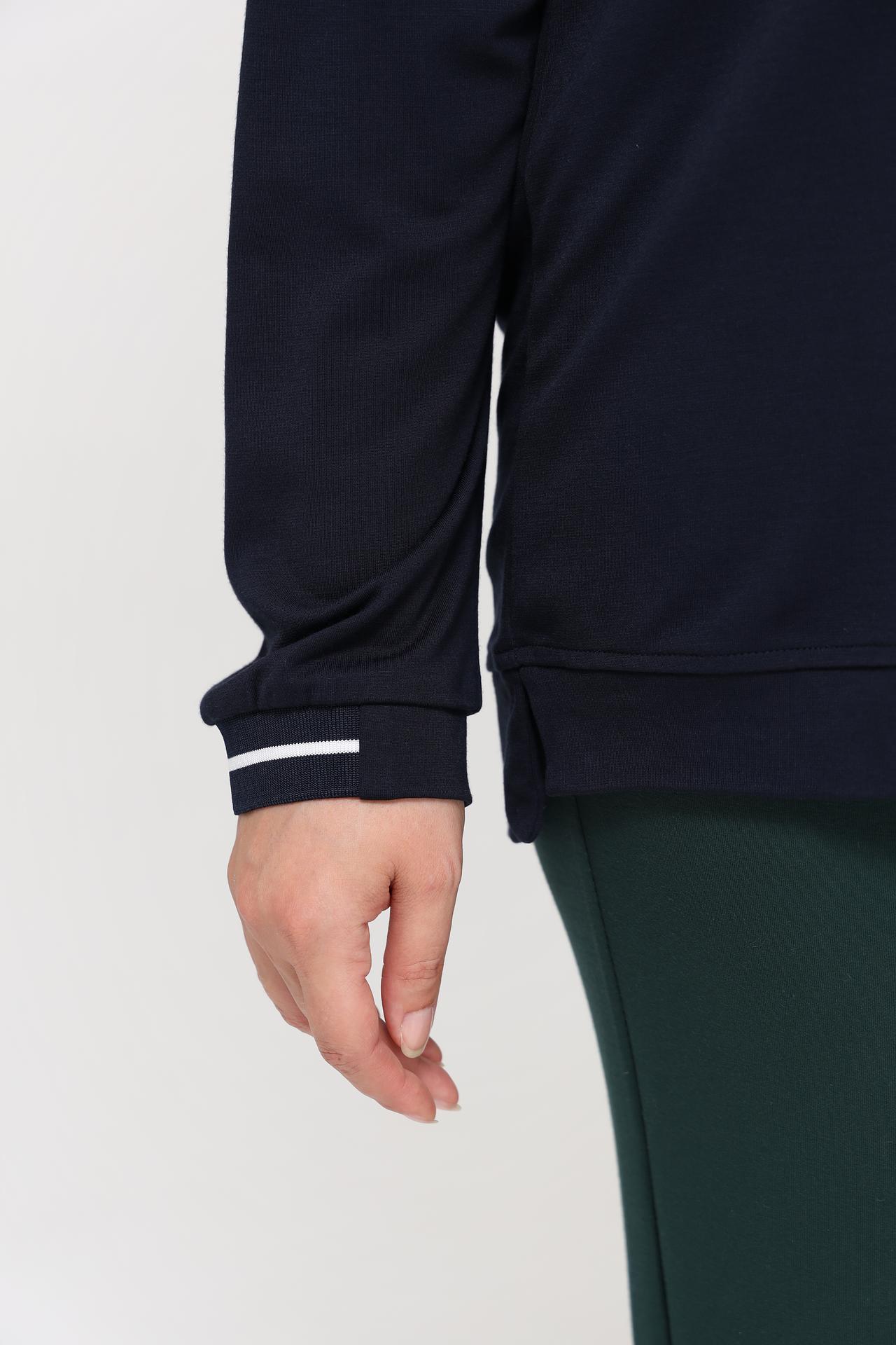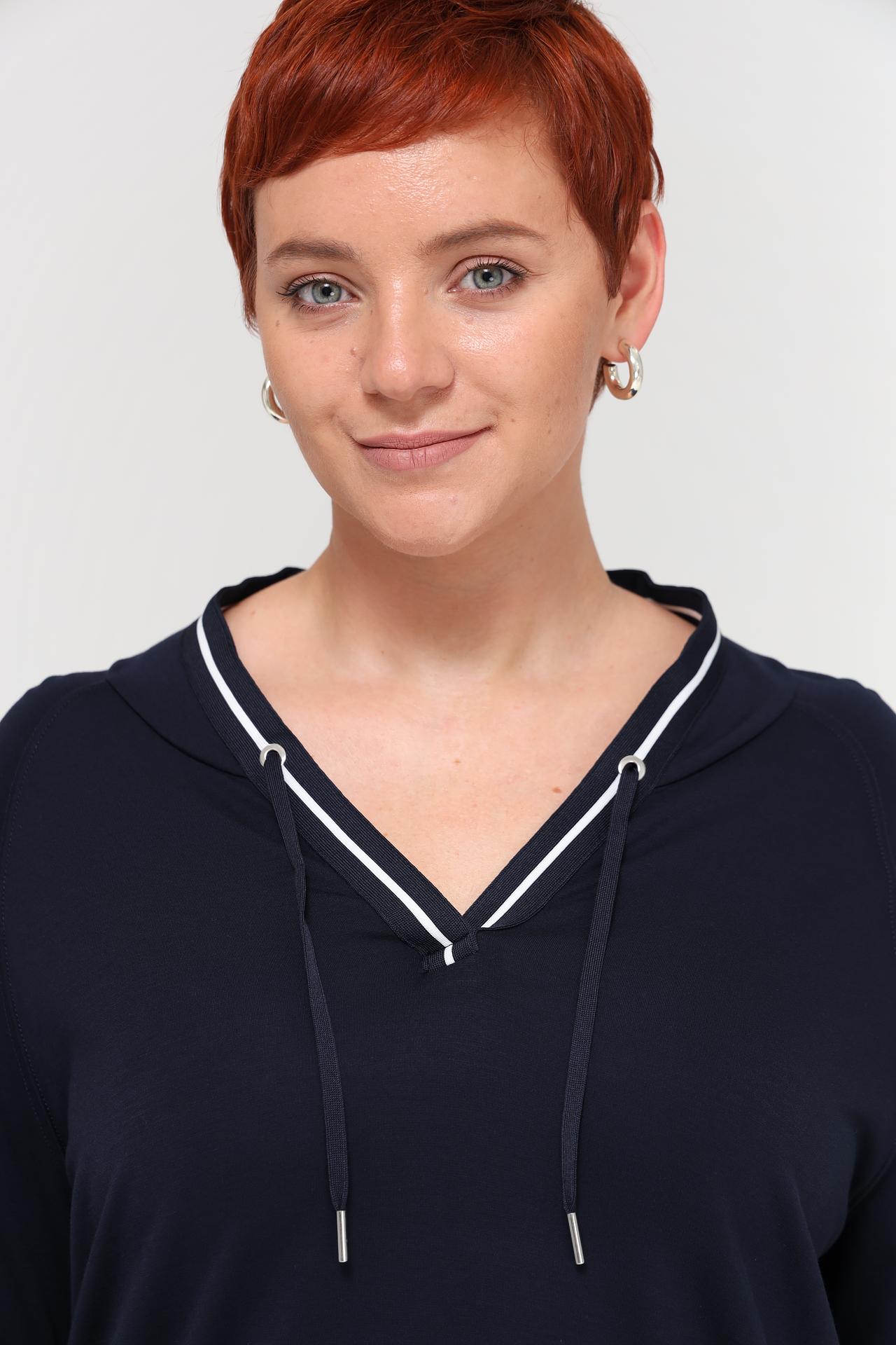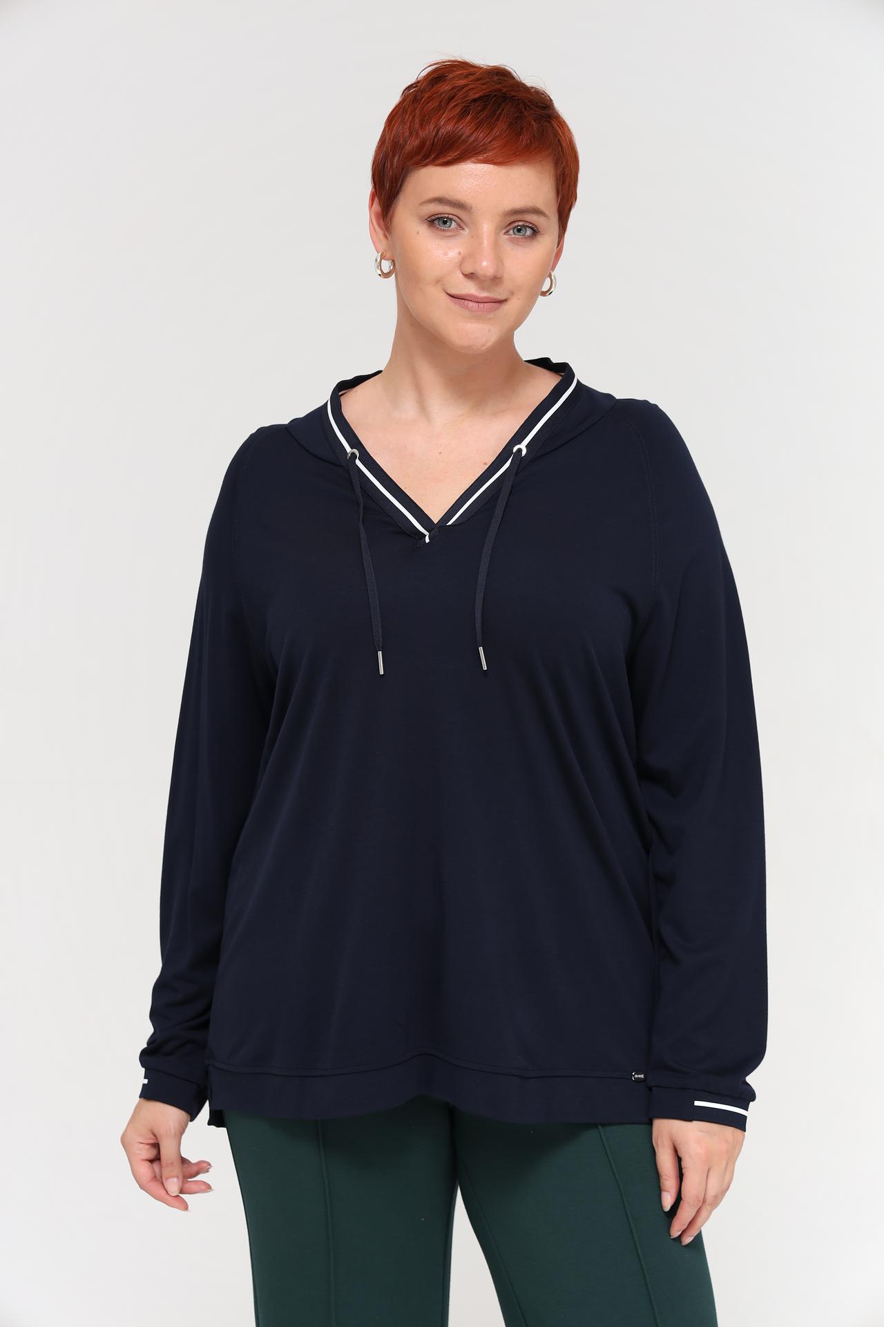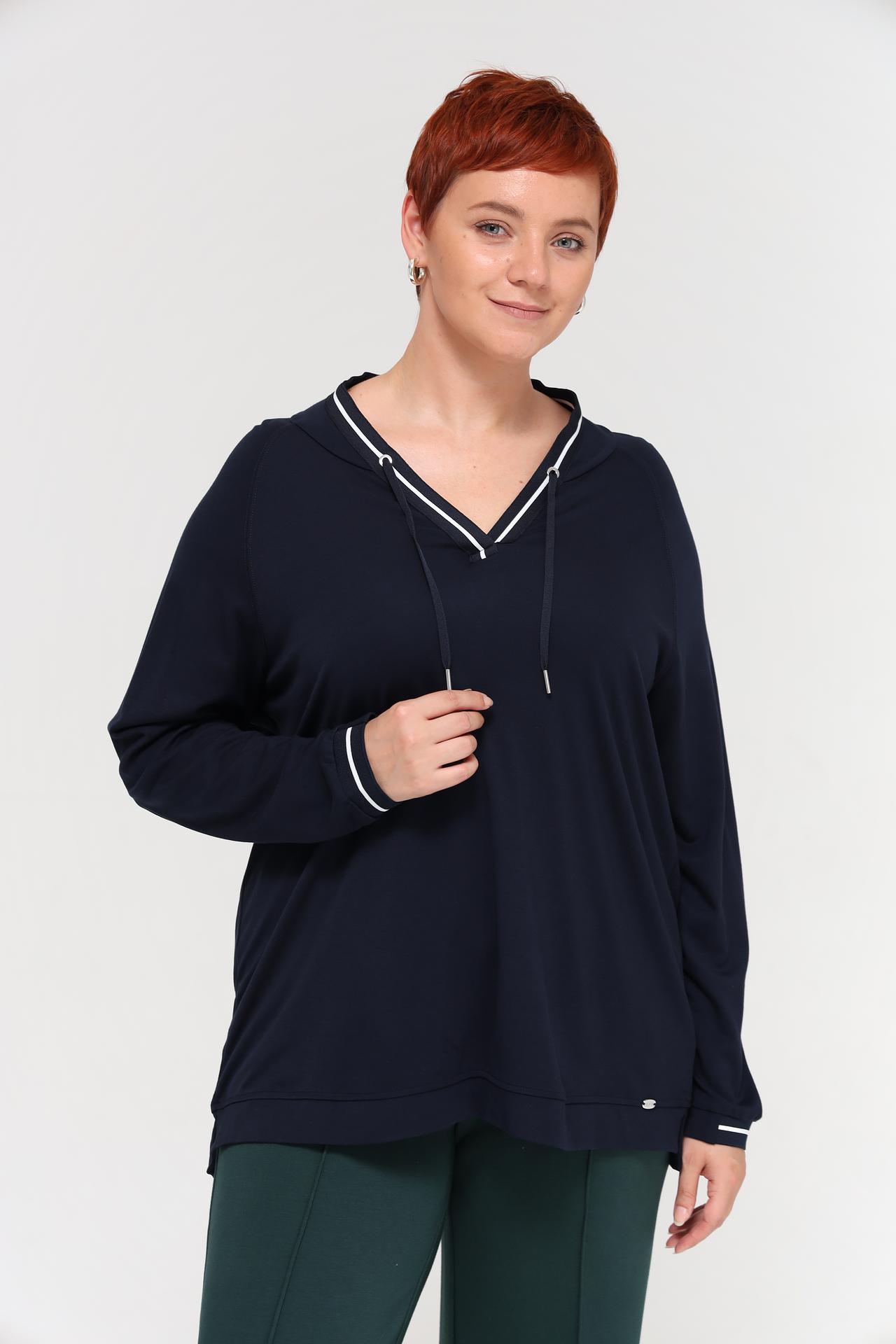 - Стильный дизайн: Темно-синий цвет и отделка делают худи актуальным и подходящим для различных образов.