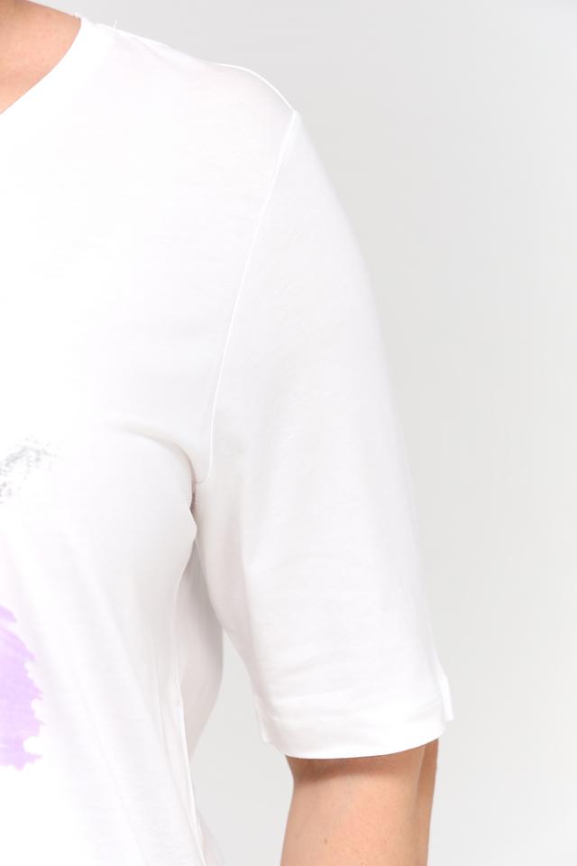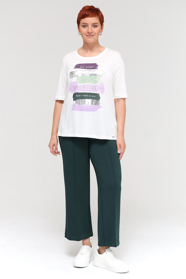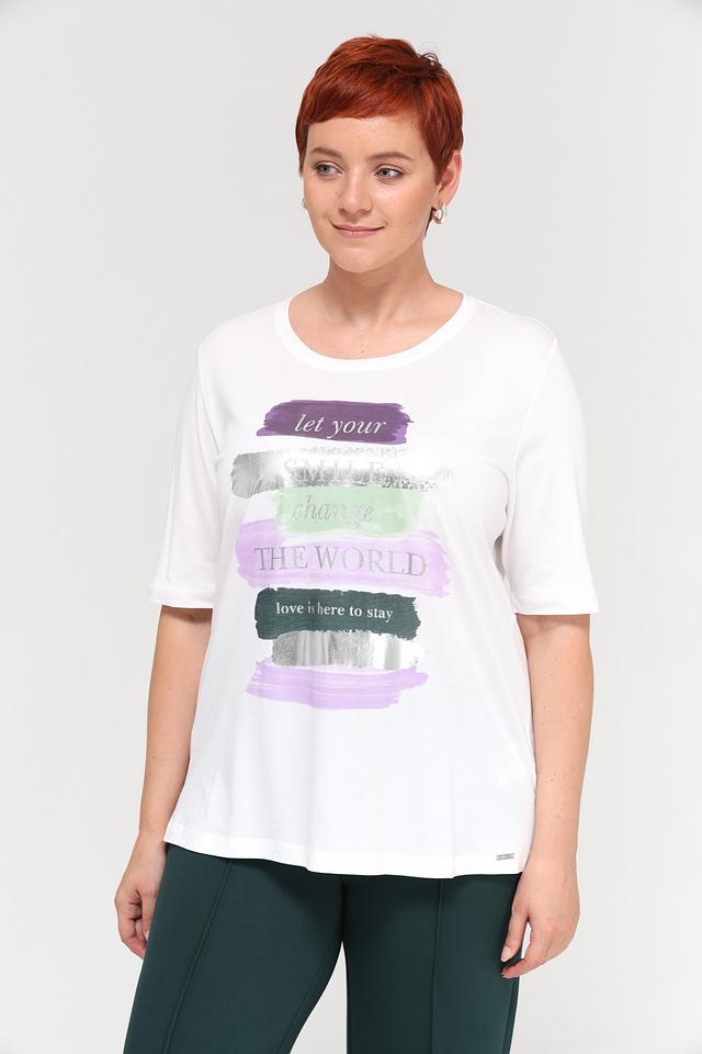 Белая футболка Via Appia с оригинальным принтом – стильное и комфортное решение для повседневного образа. Модель свободного кроя выполнена из мягкого хлопка с модалом, обеспечивающего приятные ощущения на коже. Состав: хлопок 50%, модал 50%