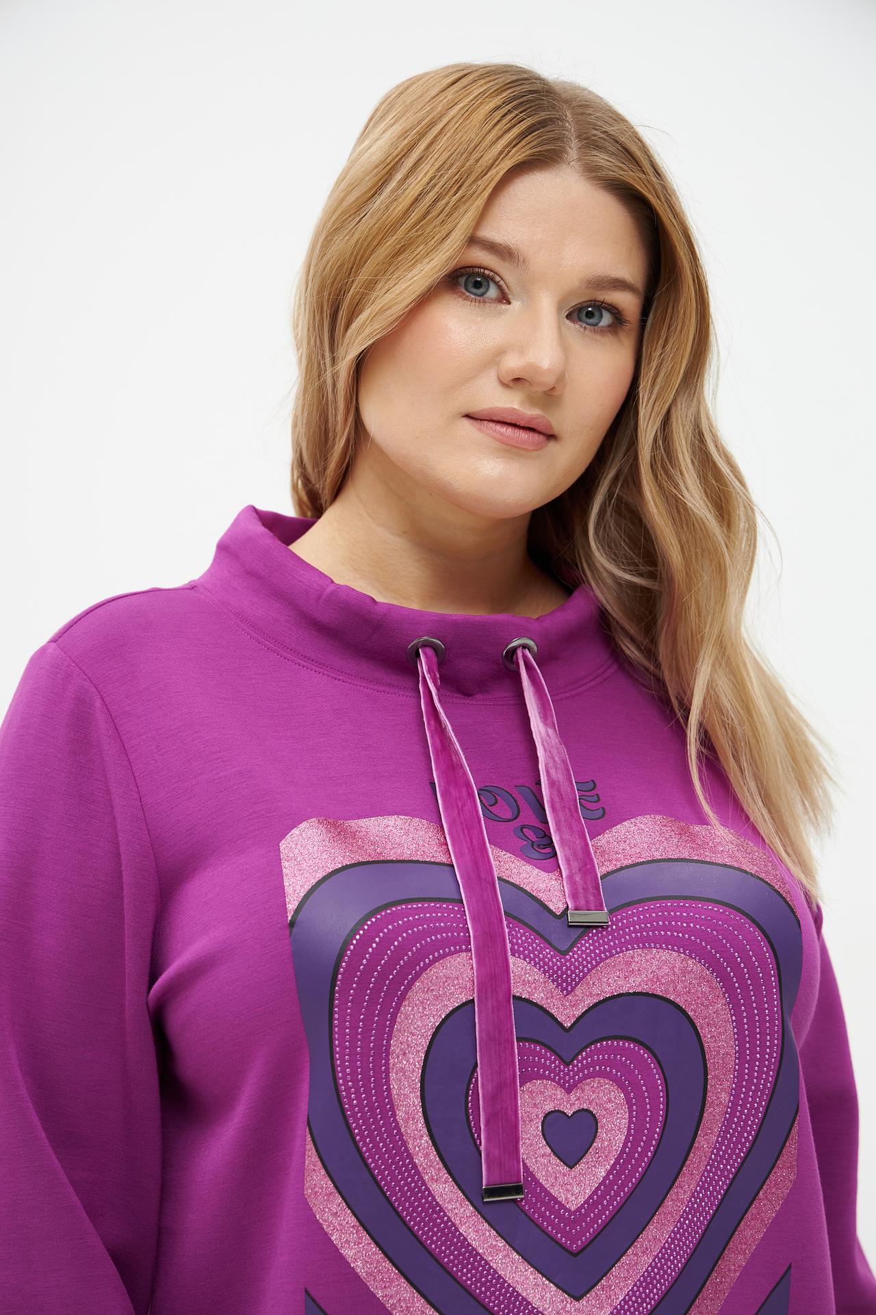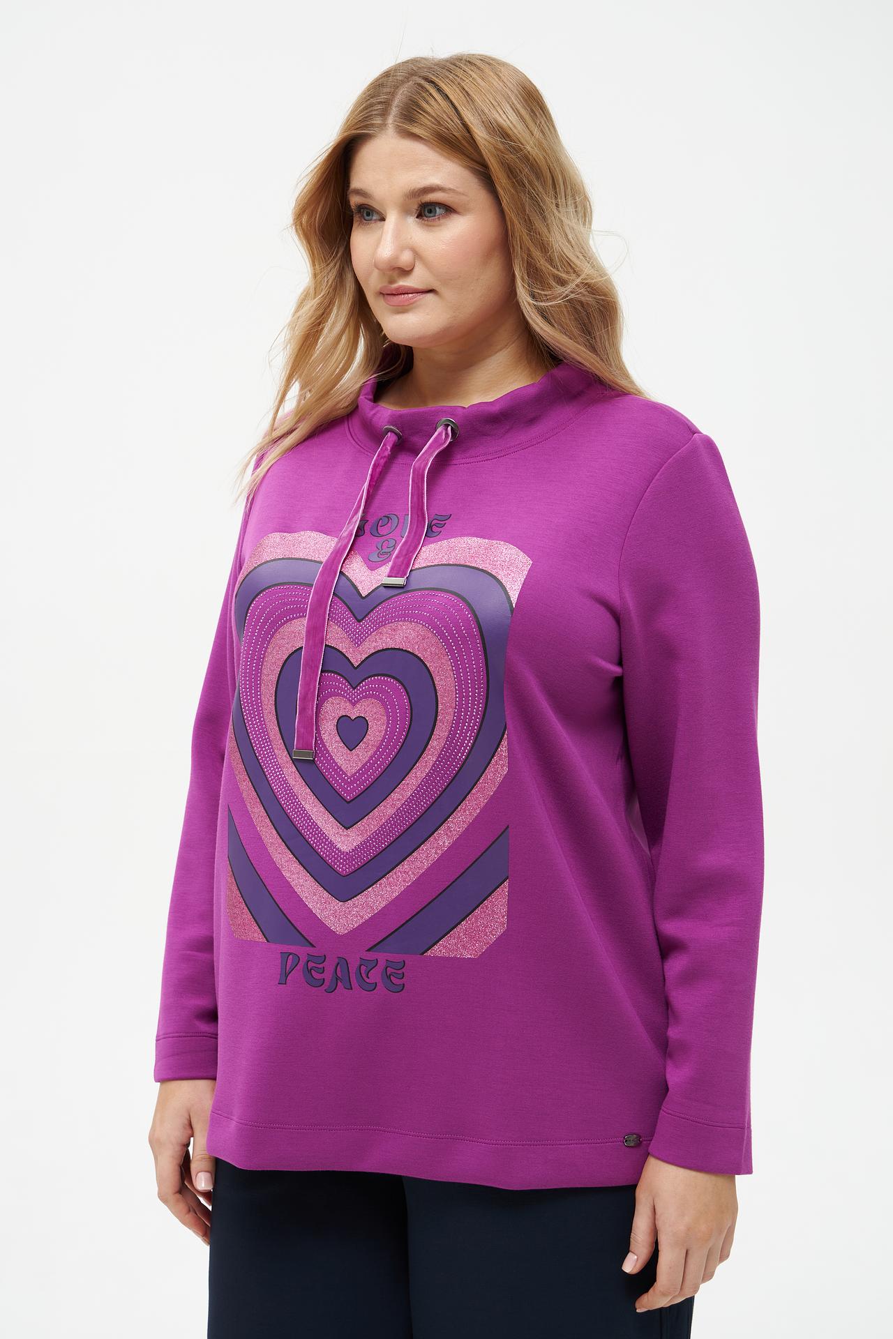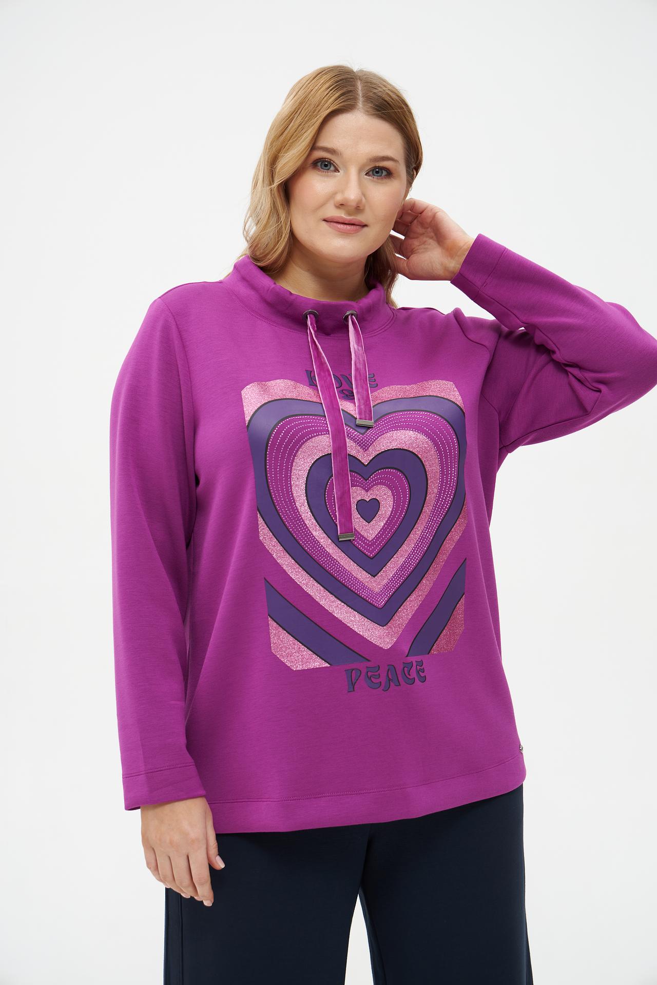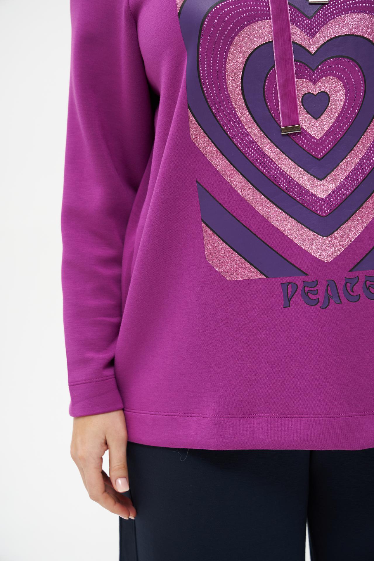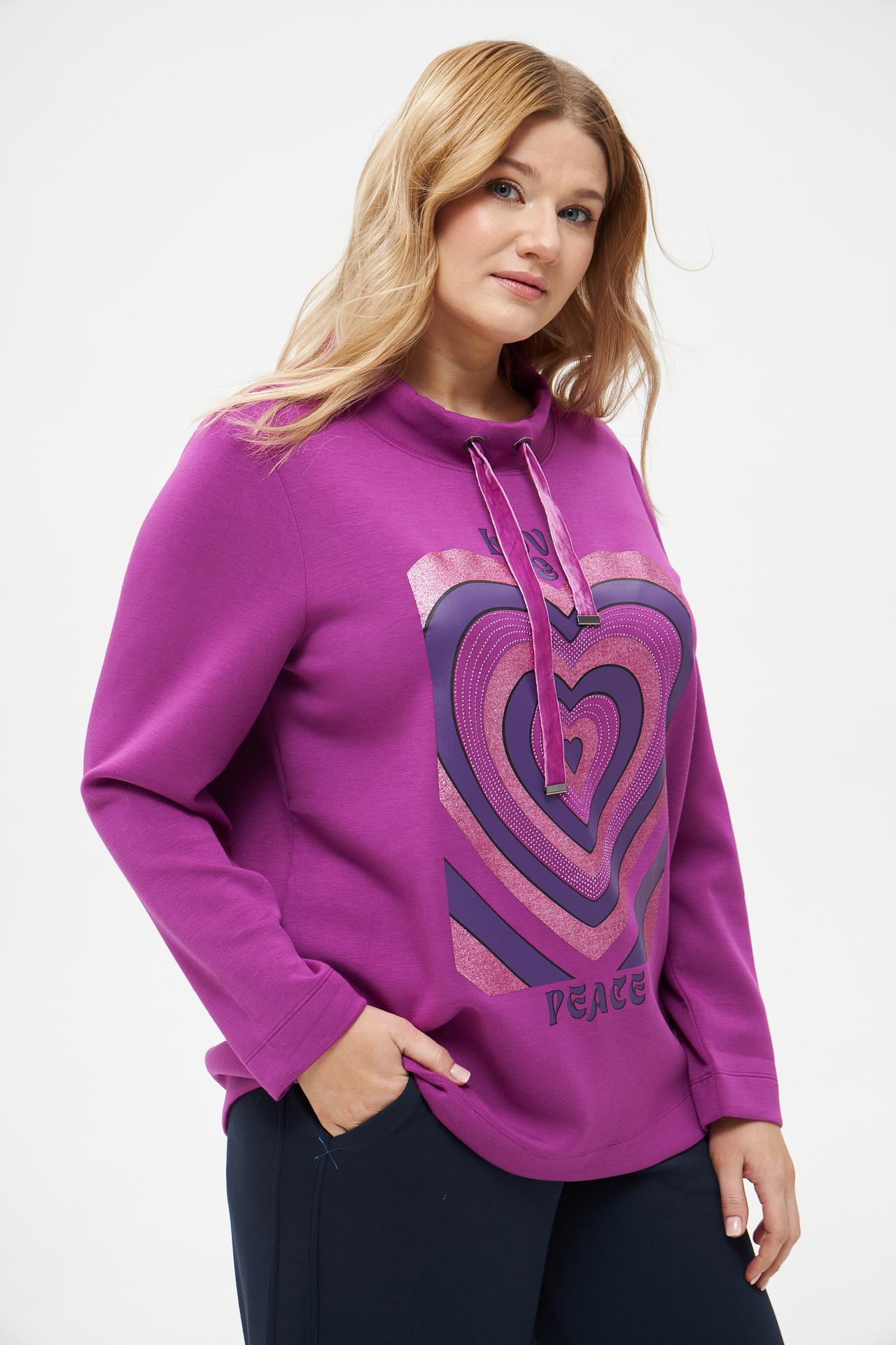 Этот фиолетовый пуловер от Via Appia – идеальный выбор для создания стильного и комфортного образа. Изготовленный из мягкой и эластичной ткани, он обеспечит вам уют и свободу движений в течение всего дня. Модный принт в виде сердца добавляет образу нотку игривости и индивидуальности.