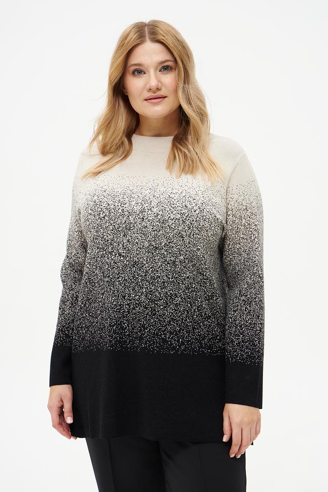 Женский пуловер Via Appia DUE чёрно-бежевого цвета с эффектным градиентным узором. Изготовлен из мягкой вискозы с добавлением полиэстера для комфорта и износостойкости. Свободный крой обеспечит удобную посадку. Состав: вискоза 62%, полиэстер 38%