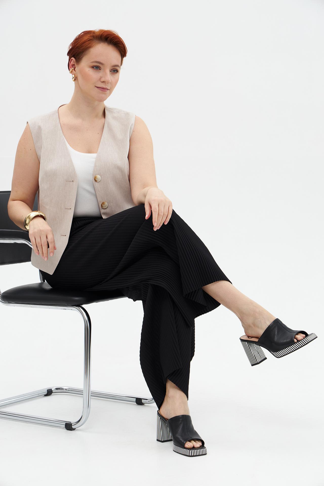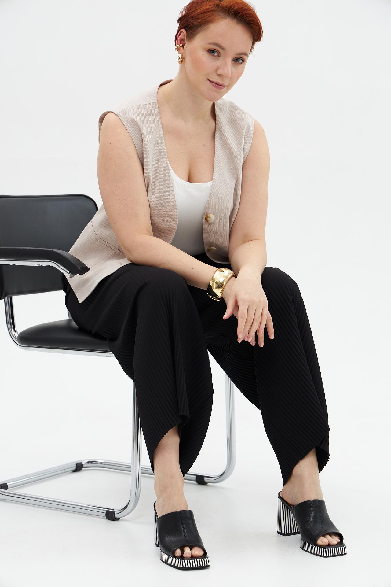 - Дизайн: Вертикальная плиссировка создает визуальный эффект стройности и элегантности. Лаконичный дизайн позволяет легко сочетать брюки с различной одеждой и аксессуарами.