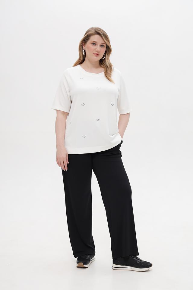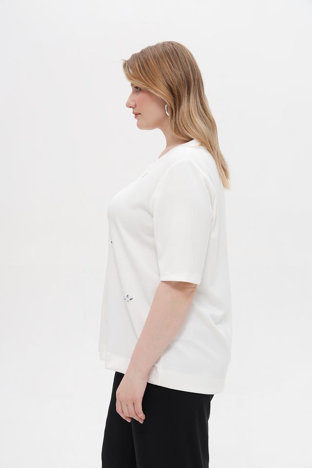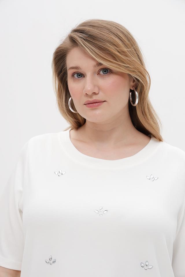 Особенностью модели является деликатная вышивка, придающая ей изысканность и женственность. Пуловер имеет свободный крой, который обеспечивает комфорт в носке и не сковывает движения.