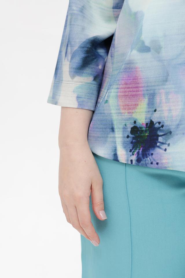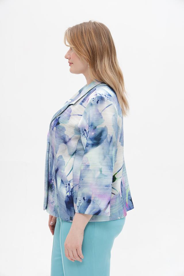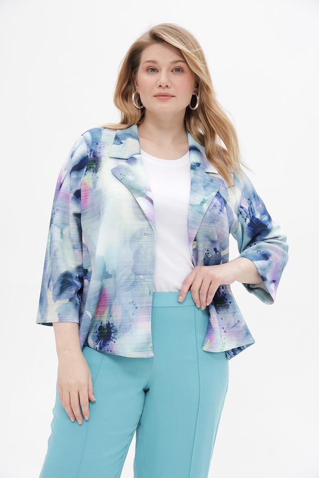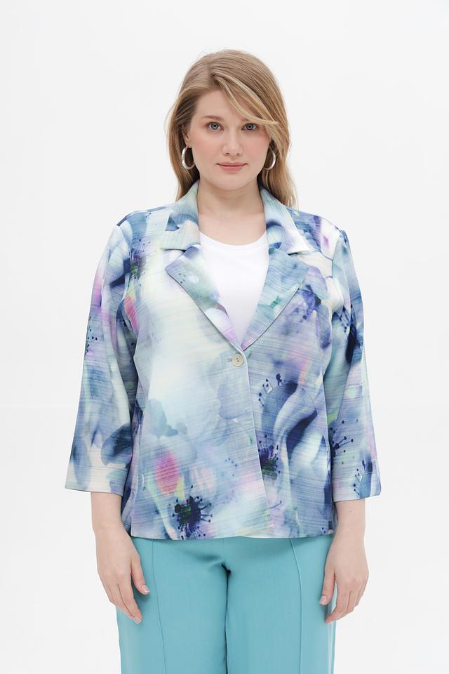 Жакет Via Appia светло-голубого цвета с оригинальным абстрактным принтом станет стильным дополнением к вашему гардеробу. Модель выполнена из лёгкой ткани с добавлением вискозы, полиэстера и эластана, что обеспечивает комфорт и удобство в носке. Состав: вискоза 48%, полиэстер 47%, эластан 5%