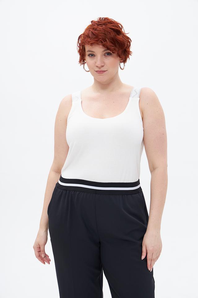 Топ имеет свободный крой, который не сковывает движения и обеспечивает комфорт в течение всего дня. Тонкие бретели добавляют изящества, а округлый вырез подчеркивает линию шеи.