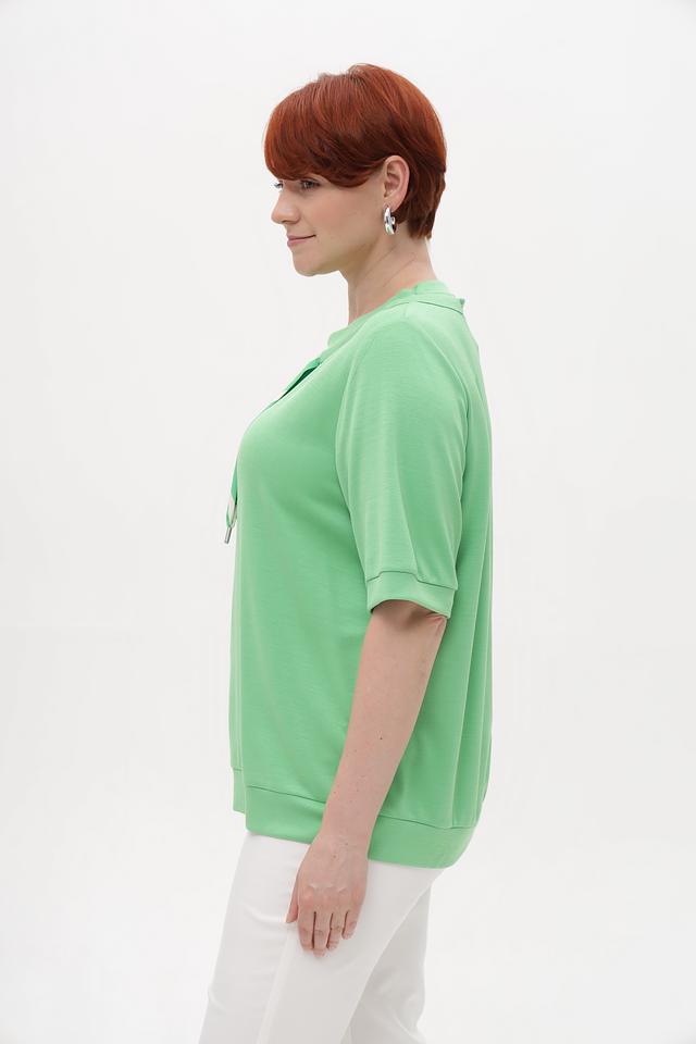 Женский пуловер Via Appia лаймового цвета с декоративными лентами. Изготовлен из мягкой вискозы с добавлением полиамида и эластана для комфорта и хорошей посадки. Состав: вискоза 48%, полиамид 45%, эластан 7%