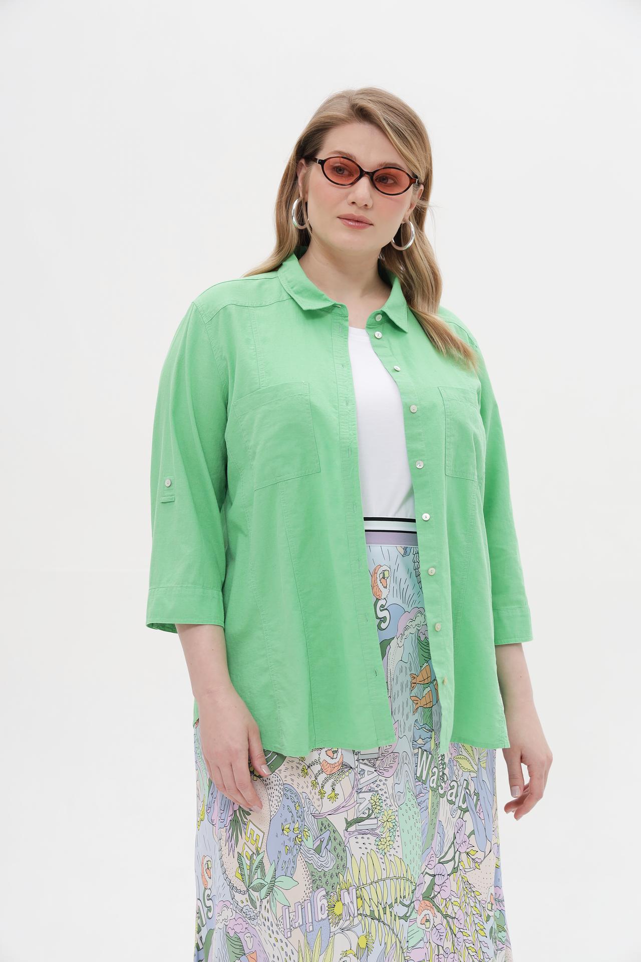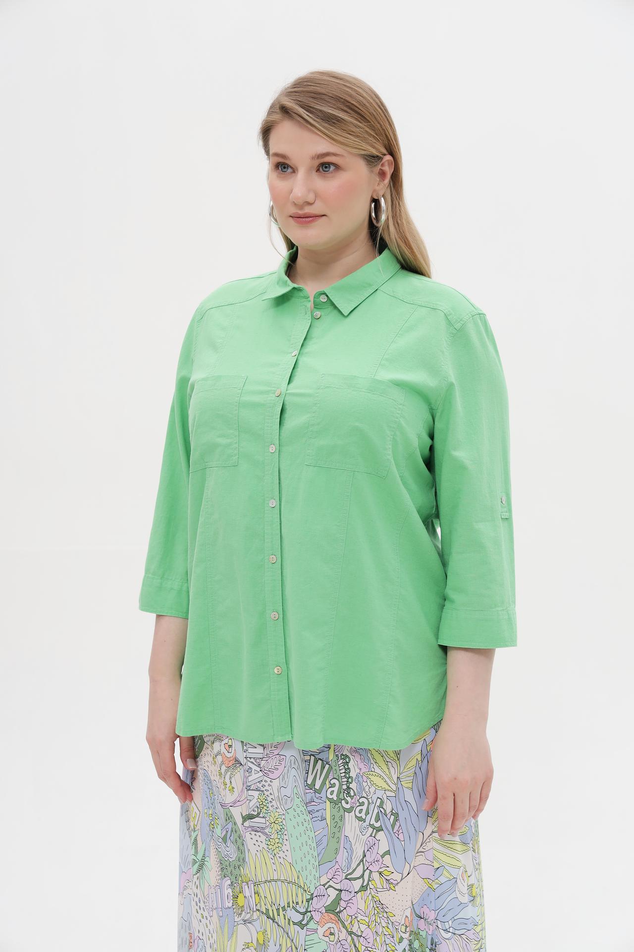 Блуза Via Appia зелёная с накладными карманами и патами на рукавах