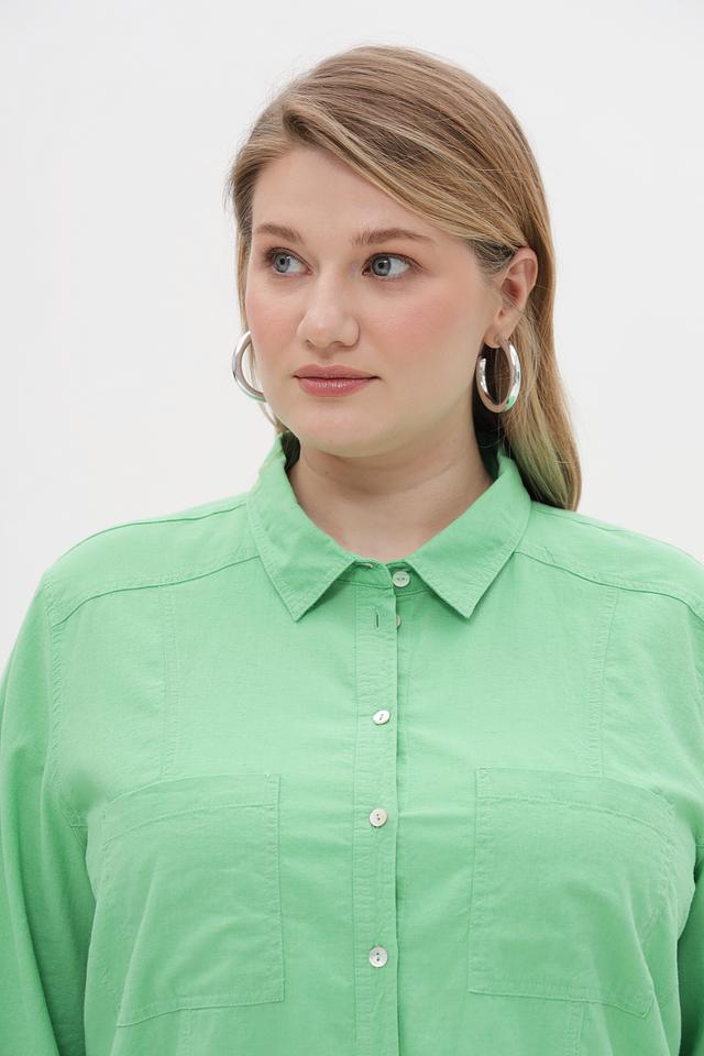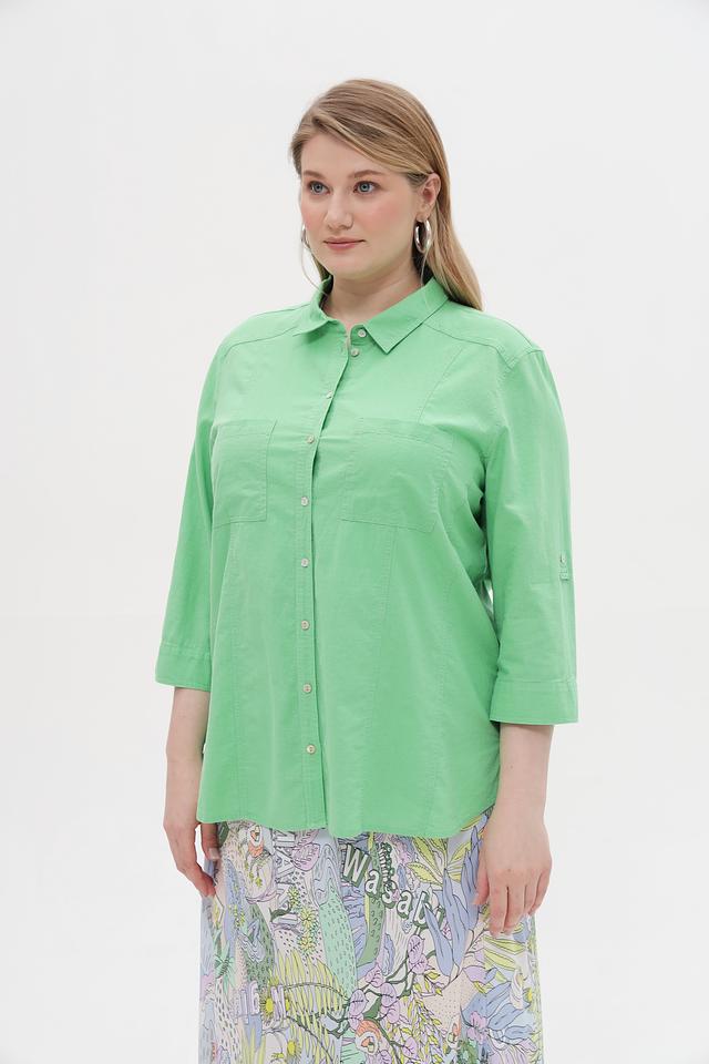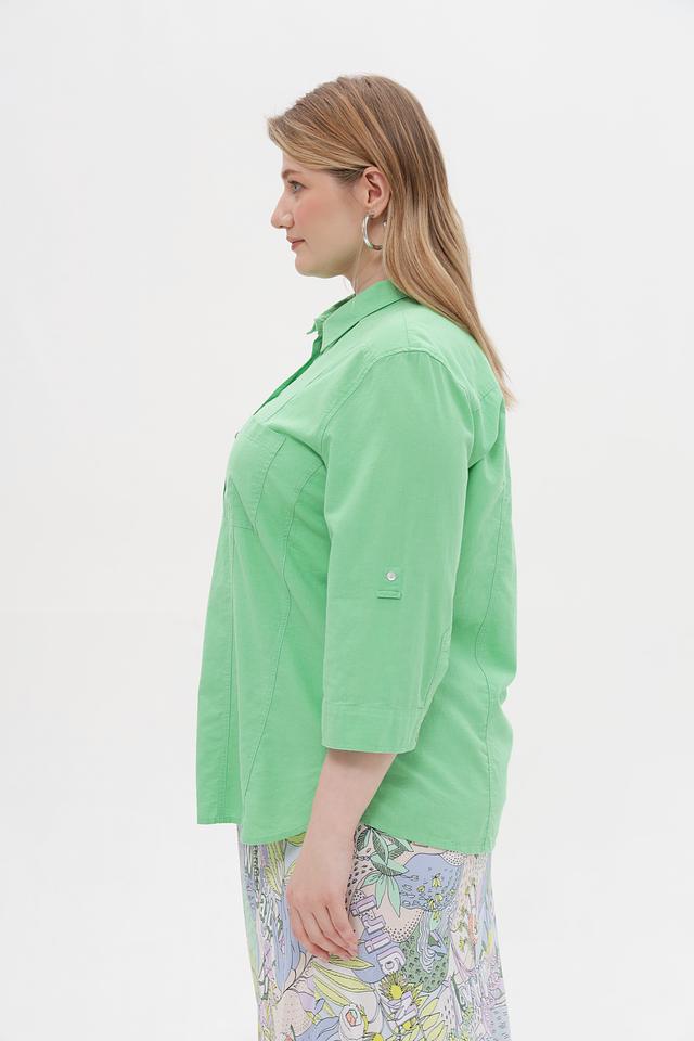 Застежка на пуговицах позволяет регулировать степень прилегания. Состав ткани: 70% хлопок, 30% лен. Эта блуза станет отличным дополнением к вашему гардеробу и позволит создавать разнообразные образы – от повседневных до более нарядных.