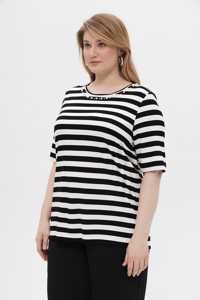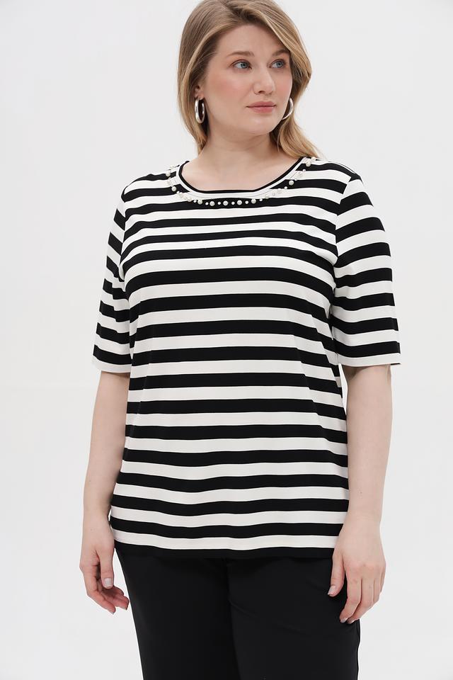 Женская футболка Via Appia черного и белого цвета в классическую полоску. Модель выполнена из мягкой вискозы с добавлением полиамида и эластана, что обеспечивает комфорт и хорошую посадку по фигуре. Состав: вискоза 80%, полиамид 16%, эластан 4%
