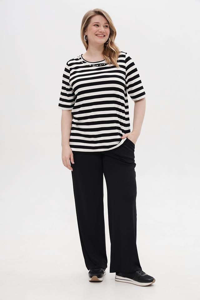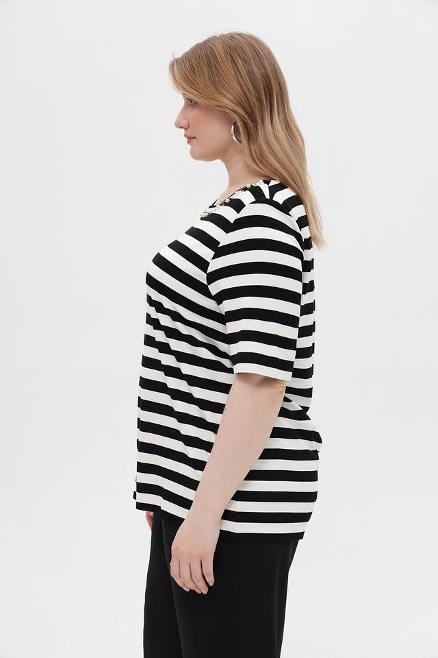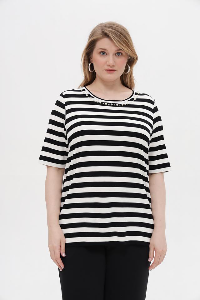 Эта стильная футболка от Via Appia станет отличным дополнением к вашему гардеробу. Модель выполнена в классическом черном и белом цвете в горизонтальную полоску, что визуально освежает образ.
