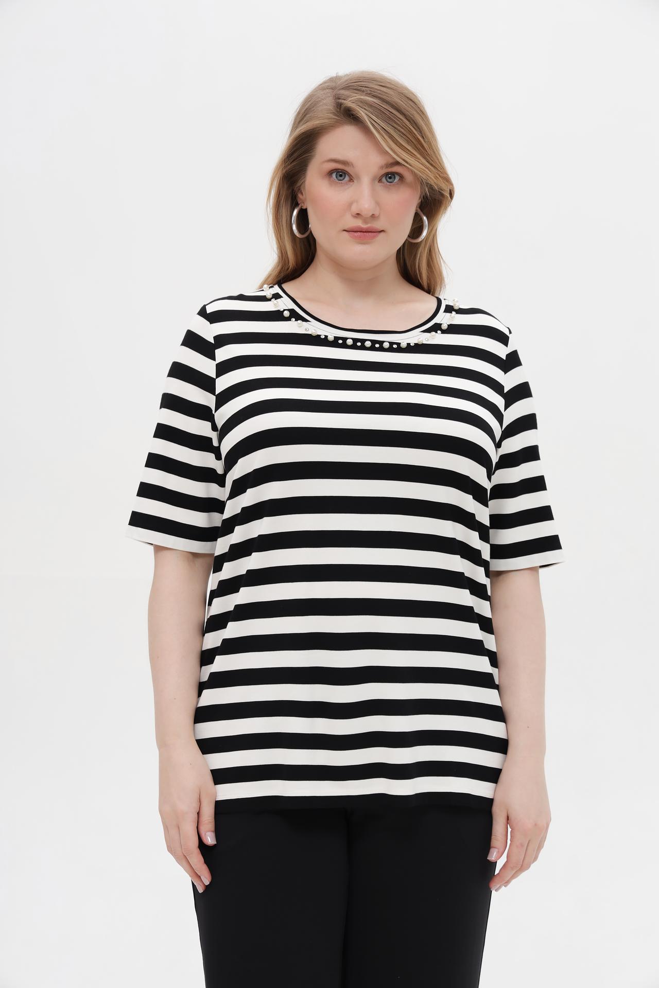 Футболка Via Appia в чёрно-белую полоску с бусинами
