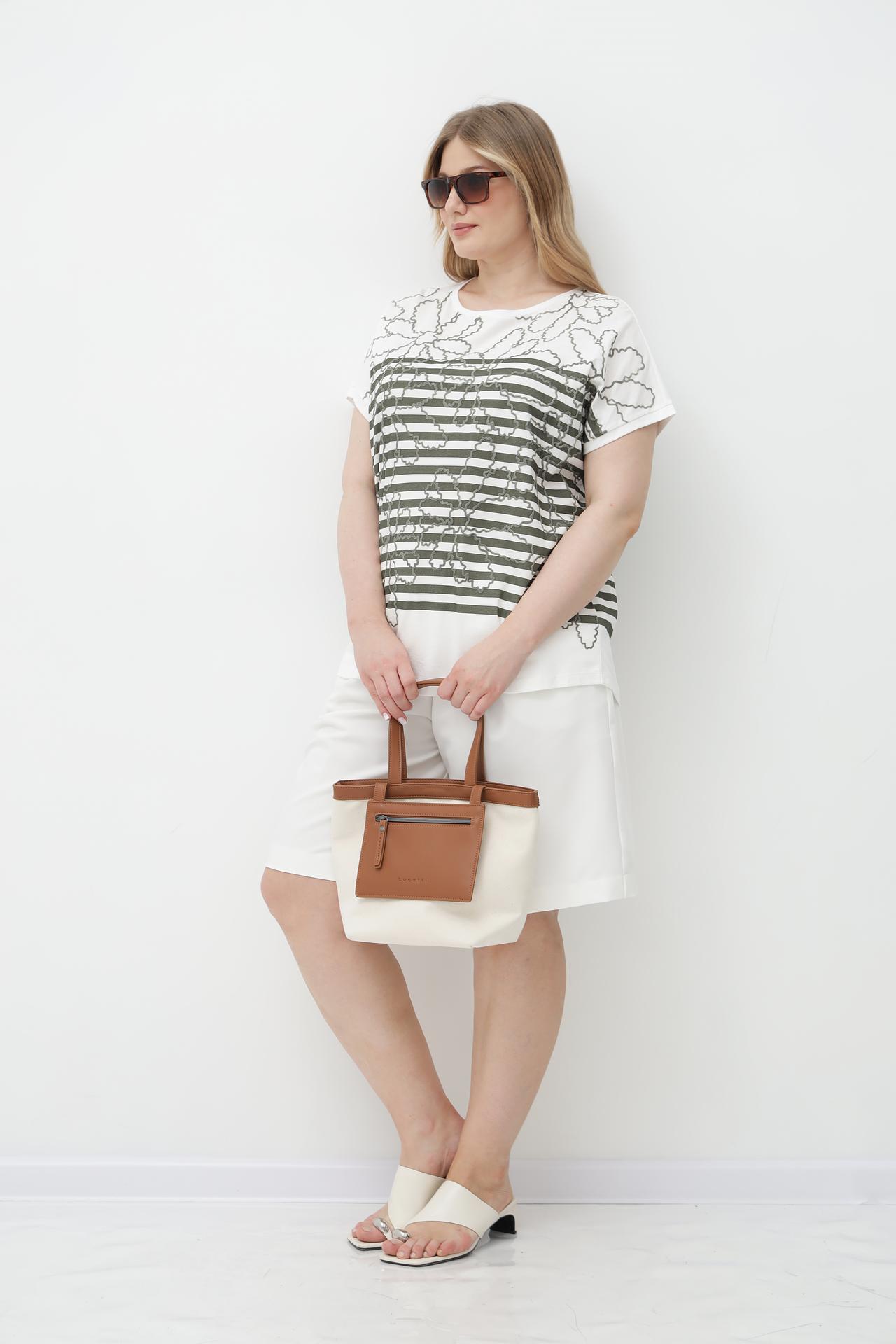 - Универсальный крой. Прямой силуэт и комфортная длина делают эту женскую футболку подходящей для любого типа фигуры. Она прекрасно сочетается как с брюками и джинсами, так и с юбками или шортами, позволяя создавать разнообразные летние образы.