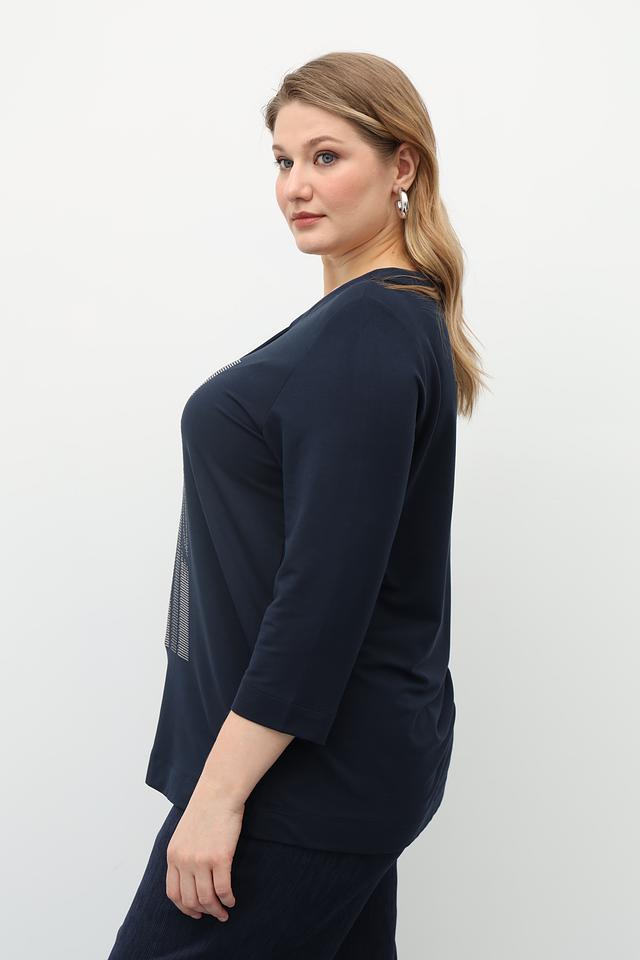 Синяя блузка Via Appia с 3/4 рукавами, украшенная вышивкой из пайеток, станет стильным дополнением вашего гардероба. Изготовлена из приятной к телу вискозы с добавлением эластана. Состав: вискоза 95%, эластан 5%