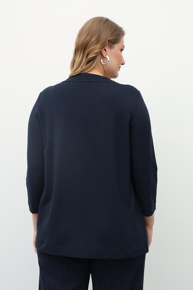 Модель имеет удобный свободный крой, который не сковывает движения. Рукава длиной 3/4 делают ее универсальной для любого времени года.