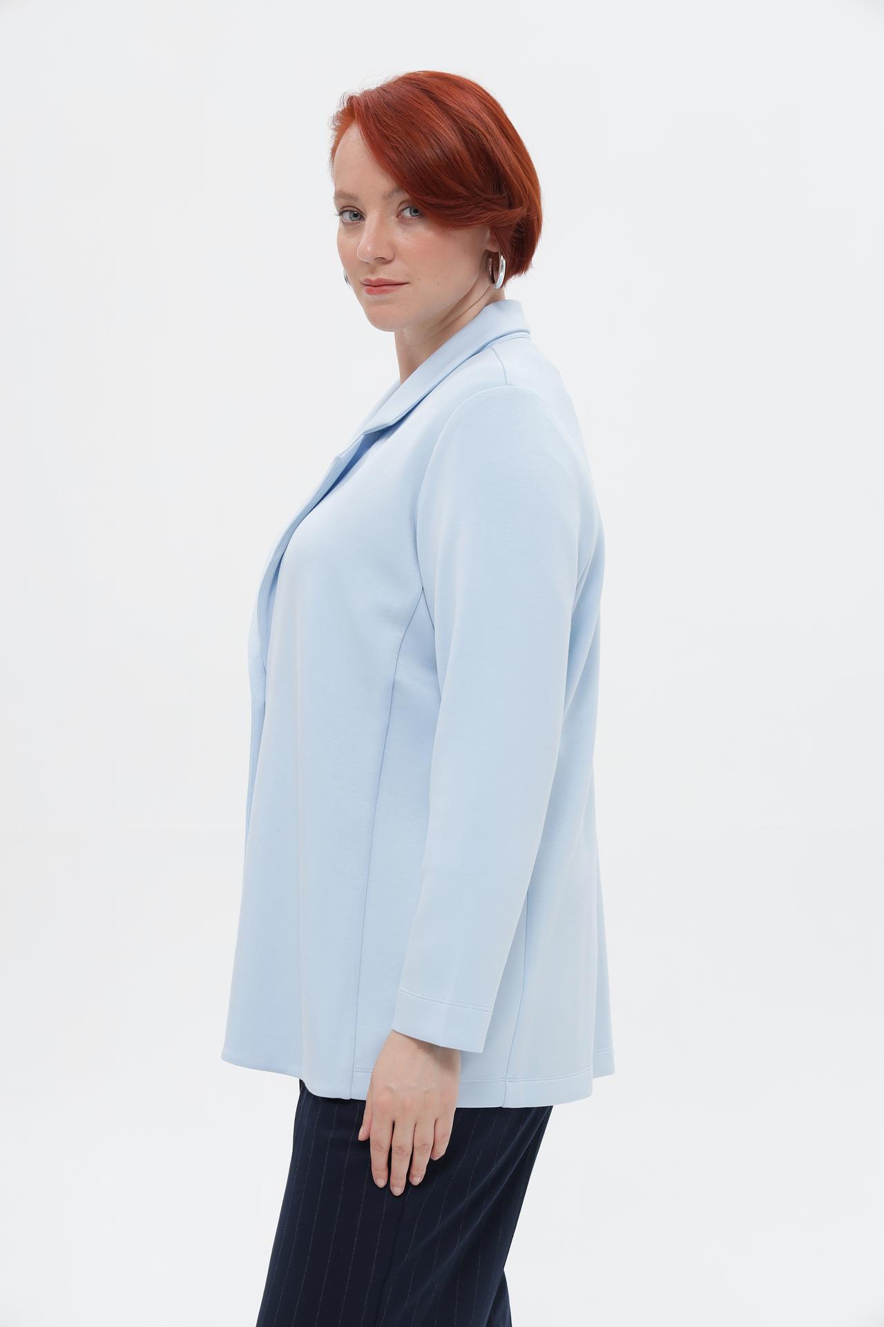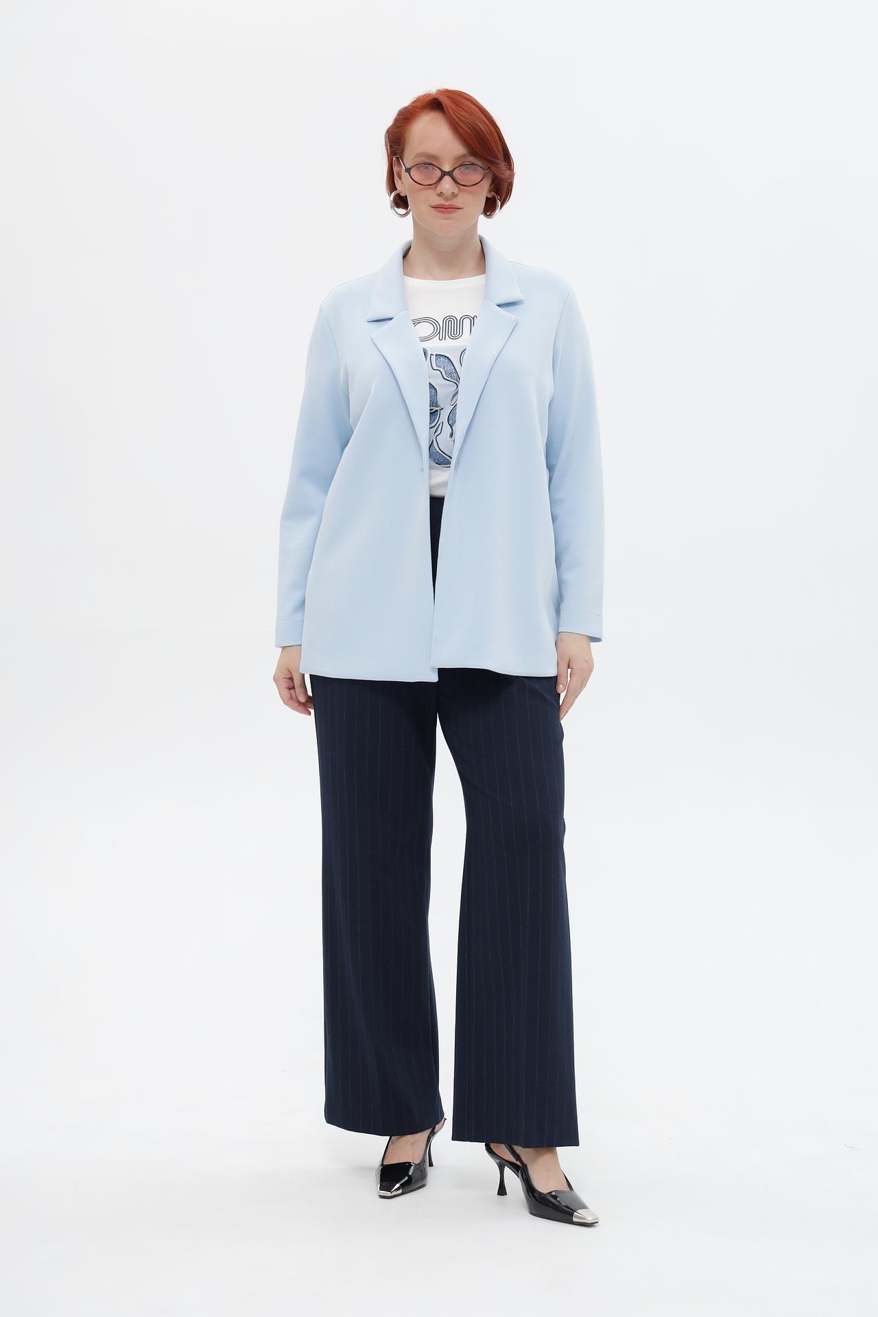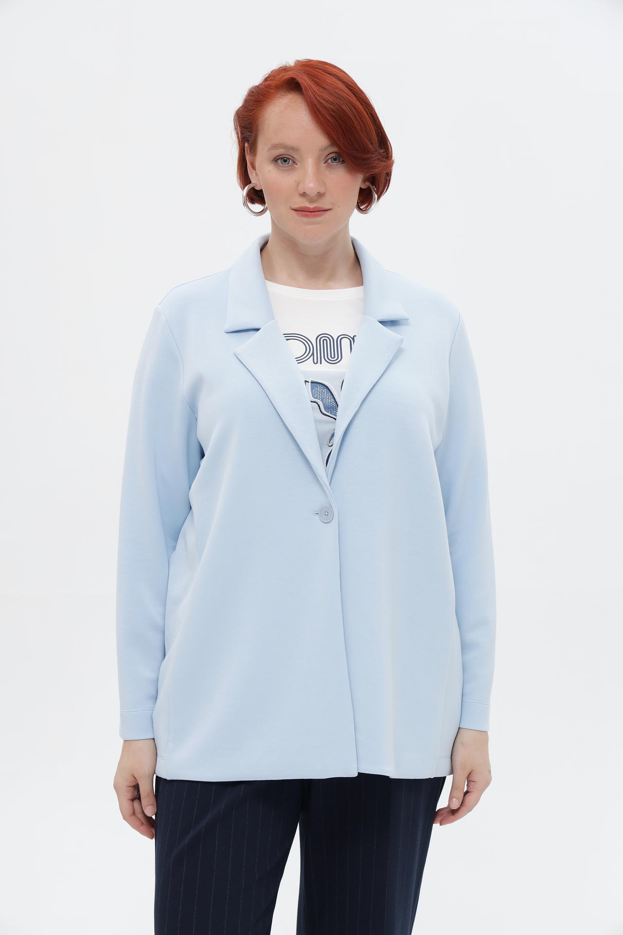 Элегантный голубой жакет от Via Appia – идеальное дополнение к вашему гардеробу. Модель с классическим отложным воротником и застежкой на одну пуговицу обеспечивает комфорт и стиль на весь день. Жакет легко сочетается как с деловыми брюками, так и с юбками, создавая множество образов.