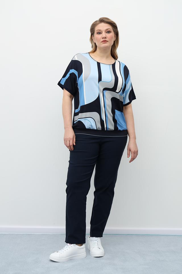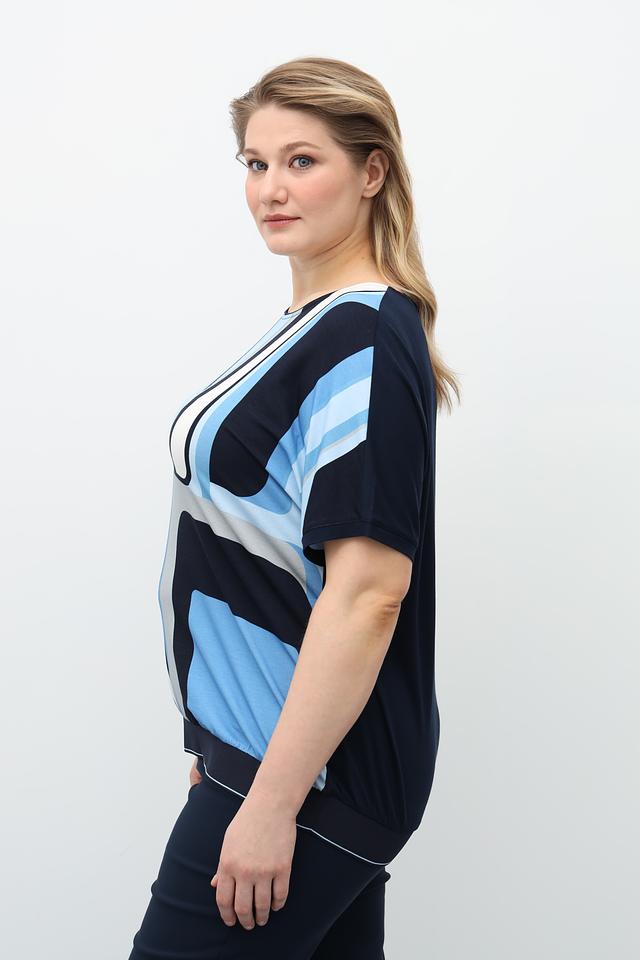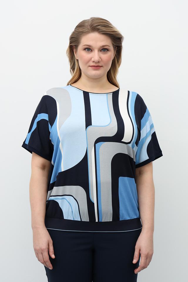 Синяя блузка Via Appia с оригинальным геометрическим принтом станет ярким акцентом вашего образа. Модель выполнена из мягкой вискозы с добавлением эластана, что обеспечивает комфорт в носке и отличную посадку. Состав: вискоза 94%, эластан 6%