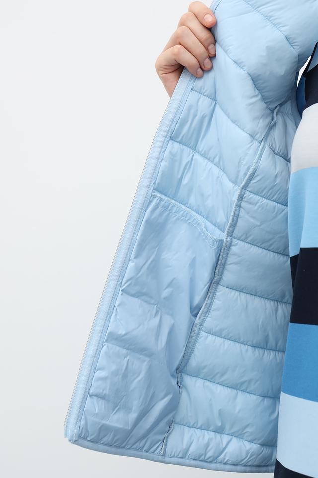 Жилет имеет длинные рукава 3/4, что делает его универсальным для межсезонья. На левой стороне расположен логотип бренда. Стеганая текстура придает изделию современный вид.