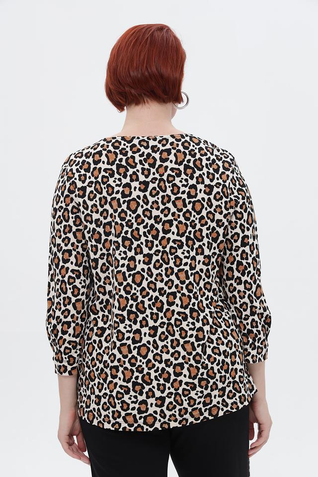 Женская футболка от бренда Via Appia выполнена в бежевом цвете и украшена выразительным леопардовым принтом.