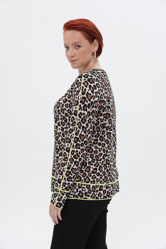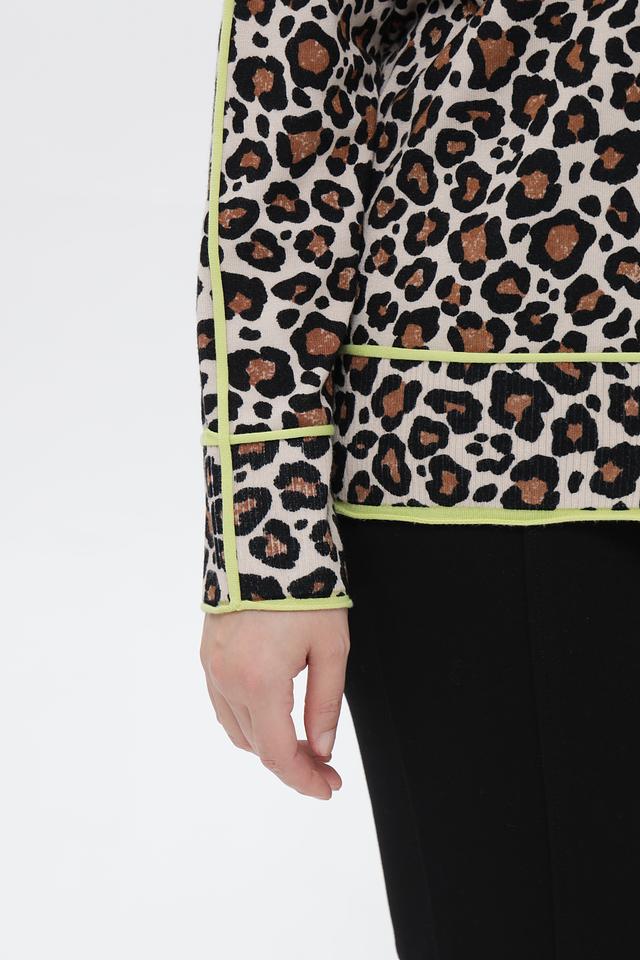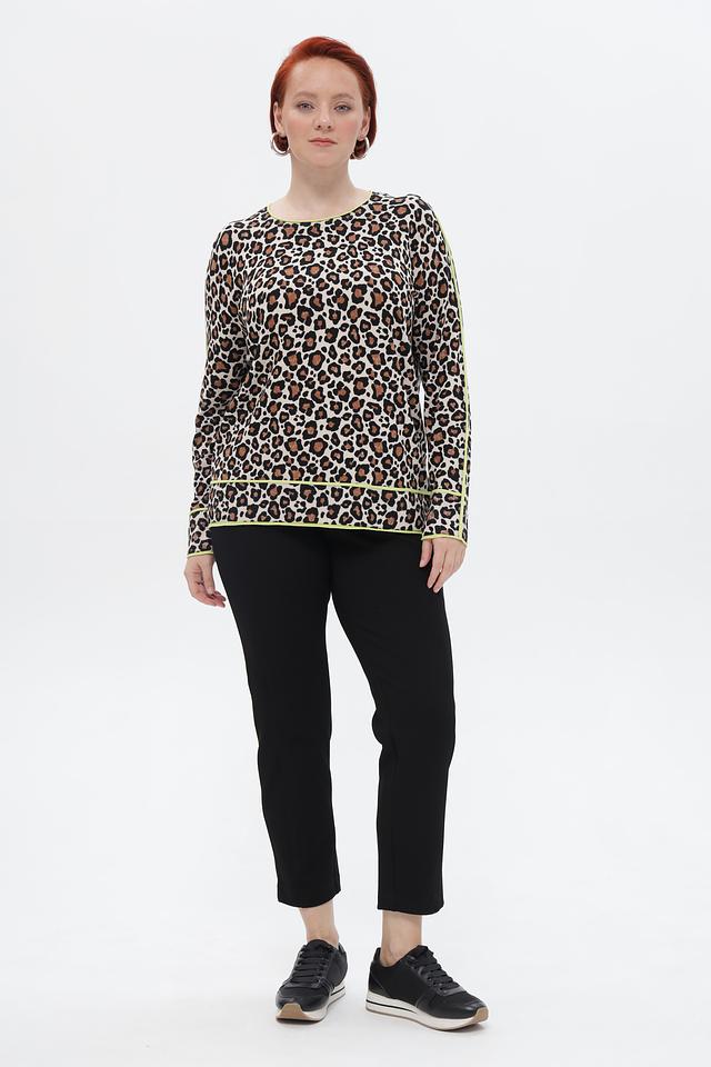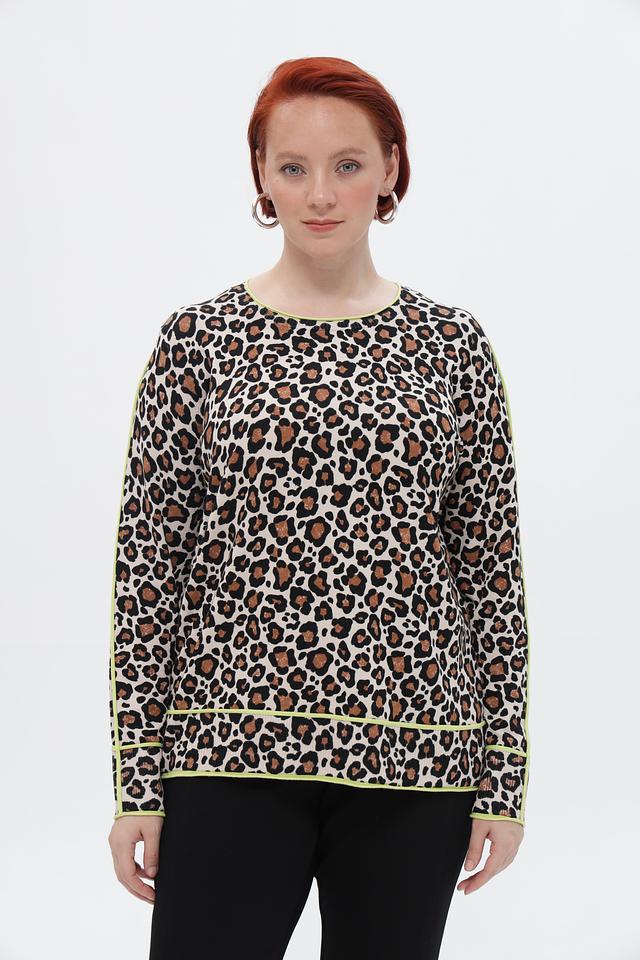 Бежевый пуловер от Via Appia с ярким леопардовым принтом и отделкой лаймового цвета. Модель выполнена из мягкой вискозы с добавлением полиамида, обеспечивающей комфорт и износостойкость. Состав: вискоза 72%, полиамид 28%
