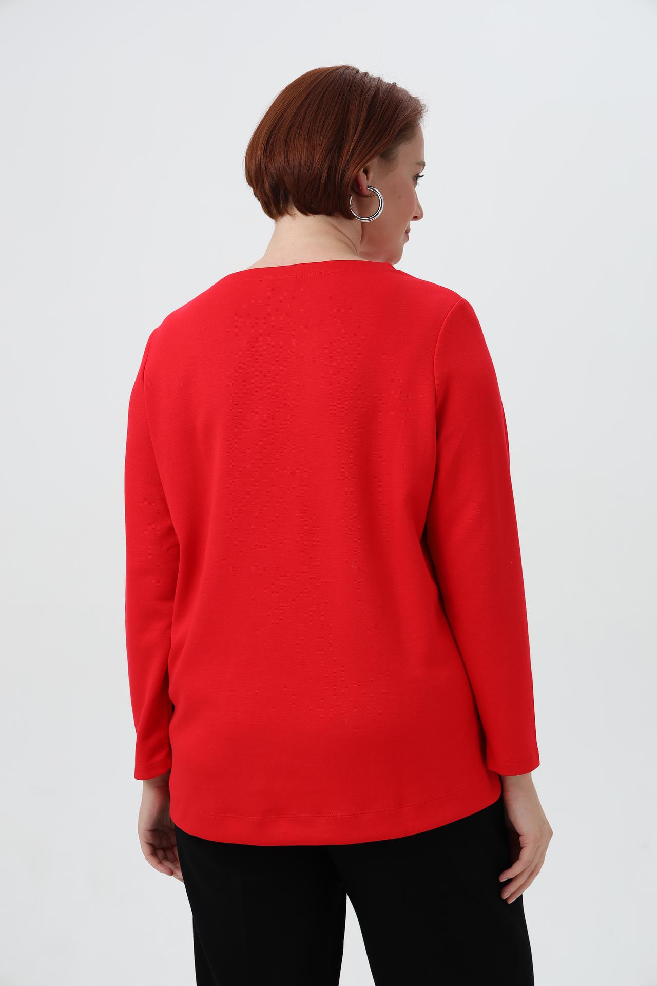 - Цвет: Яркий красный. Этот насыщенный оттенок делает пуловер заметным и универсальным, легко сочетается с различными элементами гардероба.