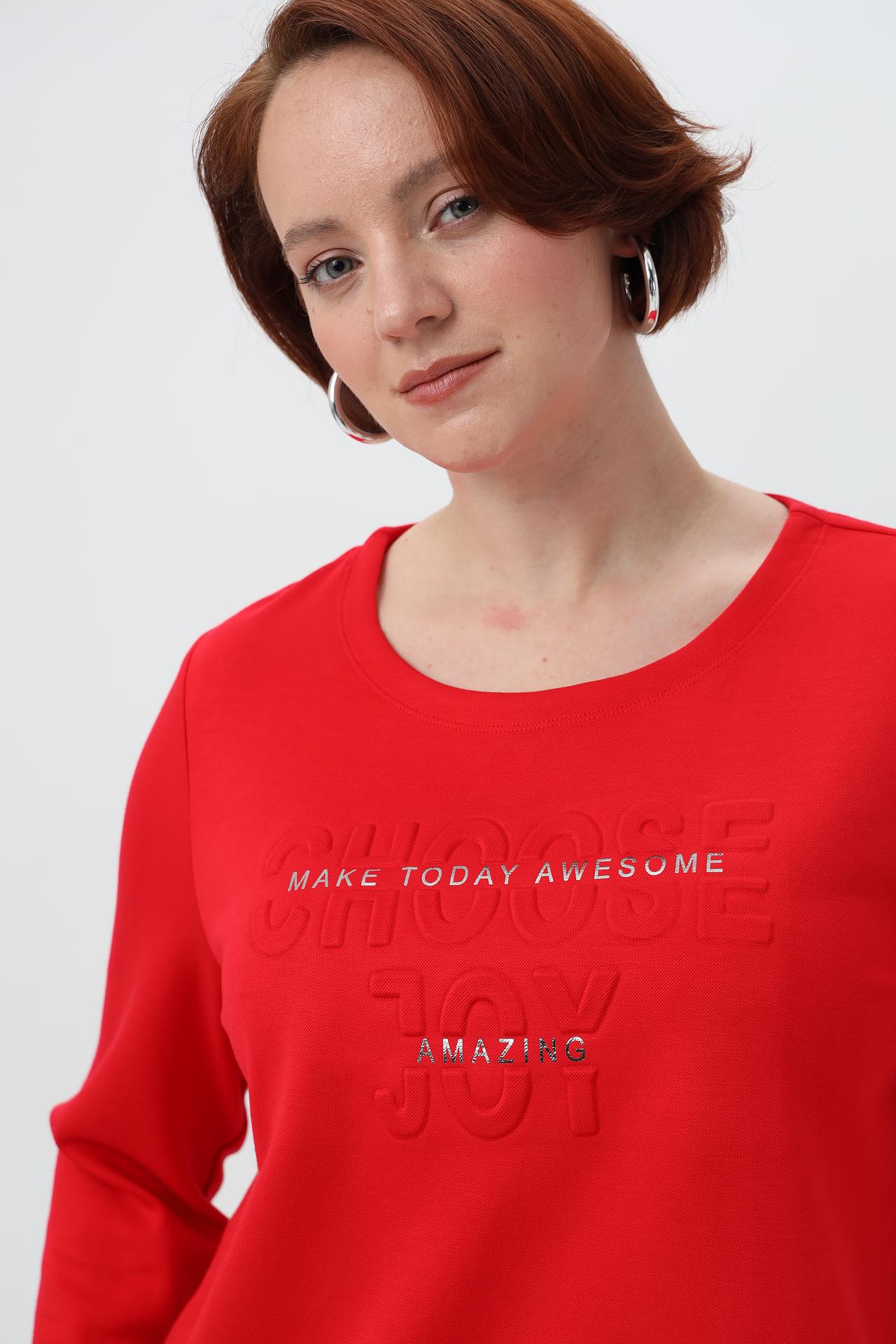 Пуловер Via Appia - идеальное сочетание стиля и комфорта. Красный цвет добавит яркости вашему образу, а объемная надпись "CHOOSE JOY AMAZING" подчеркнет индивидуальность.
