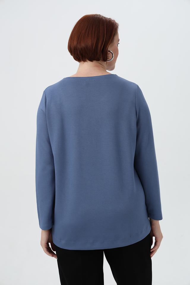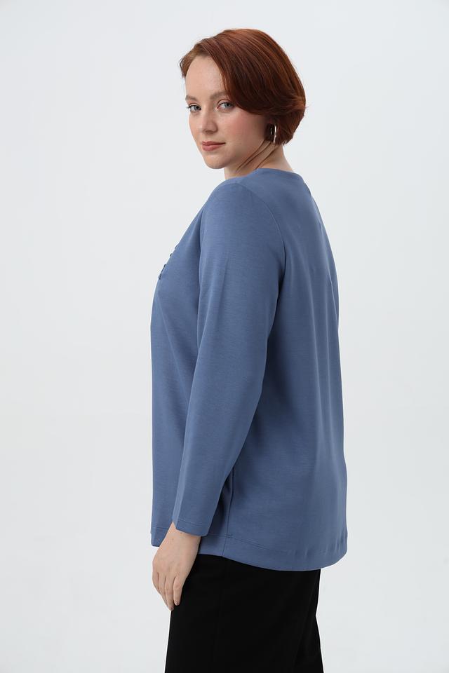 Рукава пуловера длинные, с манжетами. Вырез горловины округлый, что делает модель универсальной и подходящей для разных типов внешности.