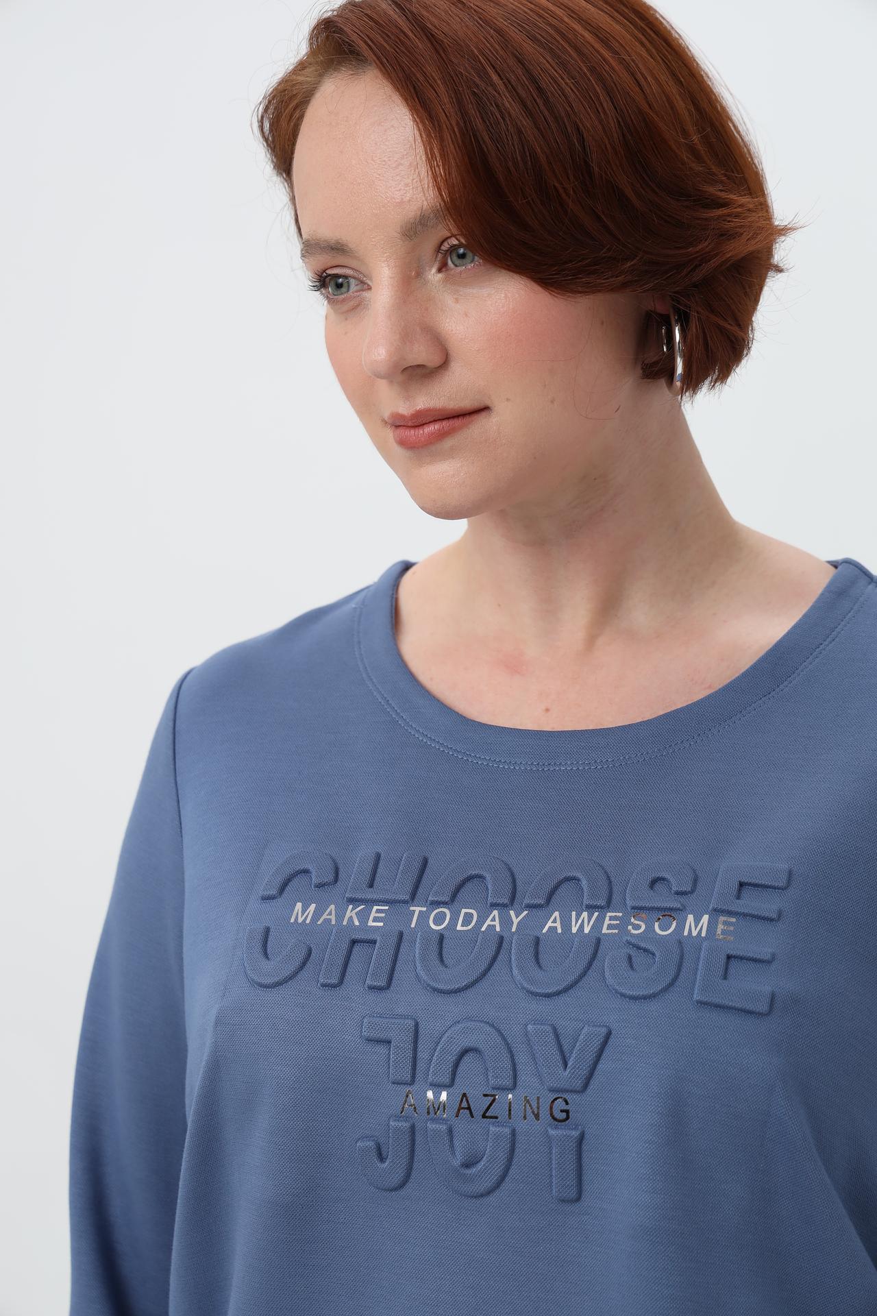 - Дизайн: Свободный крой и круглый вырез горловины создают расслабленный силуэт. На груди расположена объемная надпись "CHOOSE JOY AMAZING", выполненная тиснением, что придает изделию оригинальность и акцент.