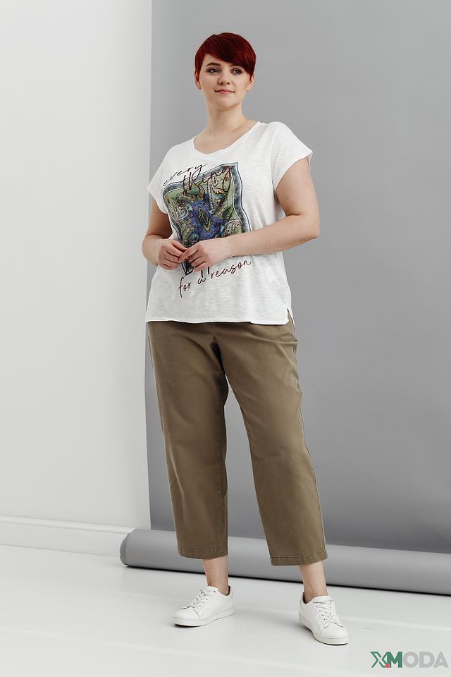Эта футболка прекрасно сочетается с джинсами, шортами, юбками и брюками. Ее можно носить как самостоятельный элемент образа, так и под жакет или кардиган.