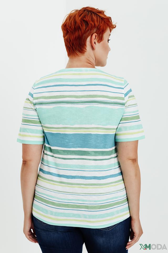 Женская футболка Via Appia в полоску, светло-зелёного оттенка, украшена круглым принтом с летней тематикой. Изготовлена из 100% хлопка, обеспечивающего комфорт и воздухопроницаемость. Состав: хлопок 100%