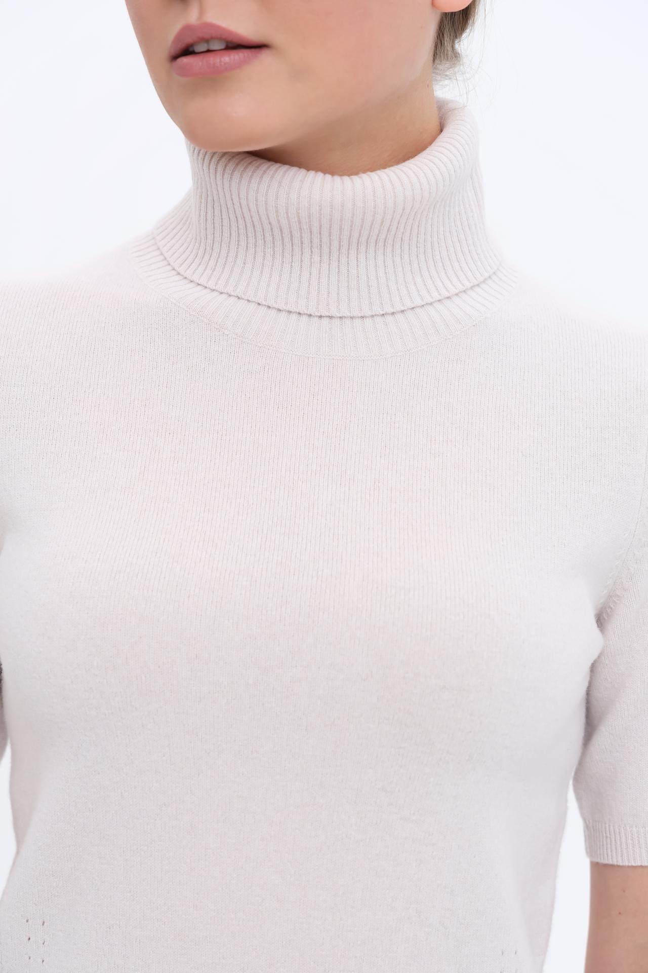 Водолазка обладает высоким воротником, который не только защищает от холода, но и добавляет образу изысканности. Модель с короткими рукавами прекрасно сочетается с пиджаками, кардиганами или куртками, позволяя создавать многослойные образы.
