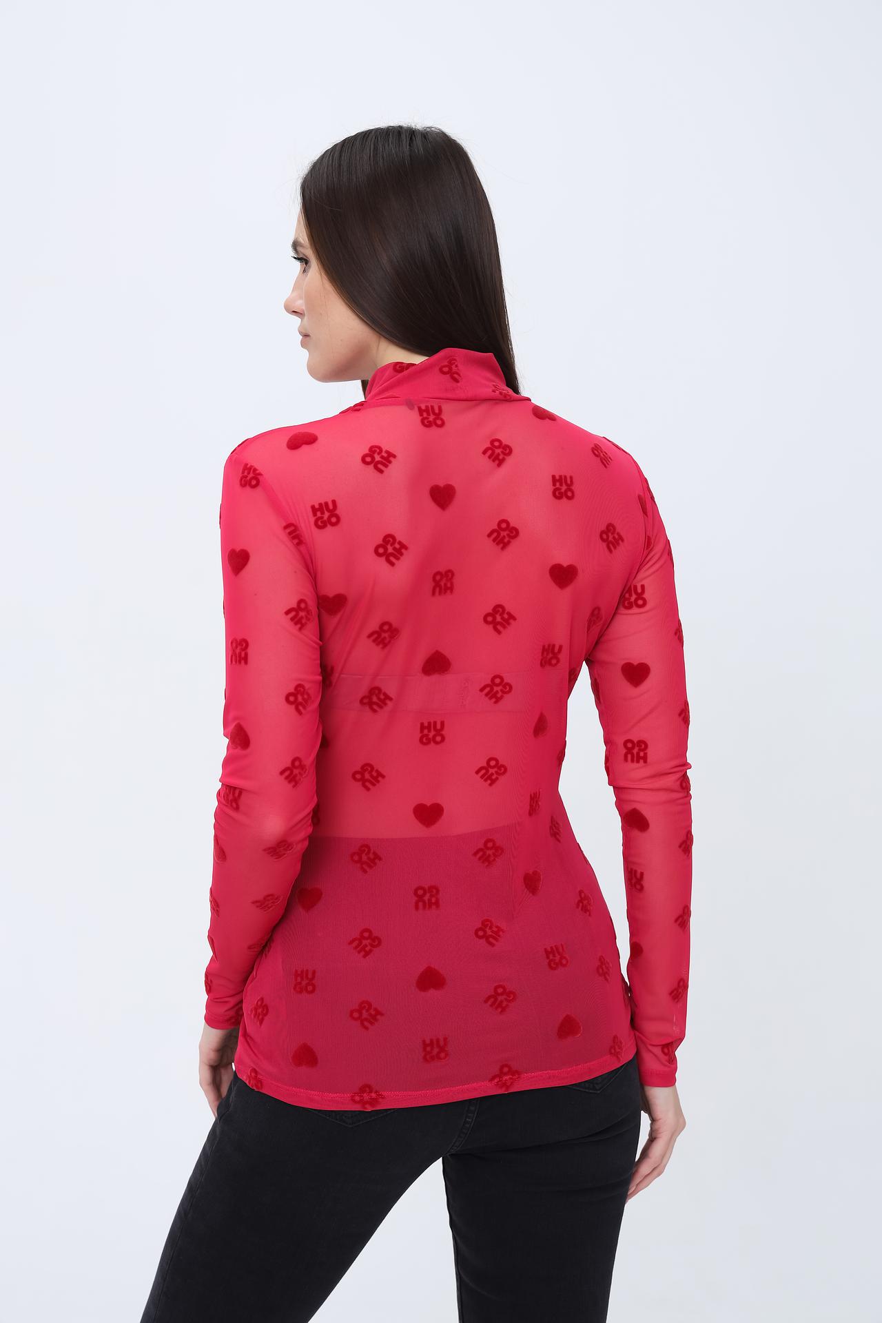 - Дизайн: Водолазка украшена стильным принтом в виде сердечек и логотипов бренда, добавляя игривости и изысканности.
