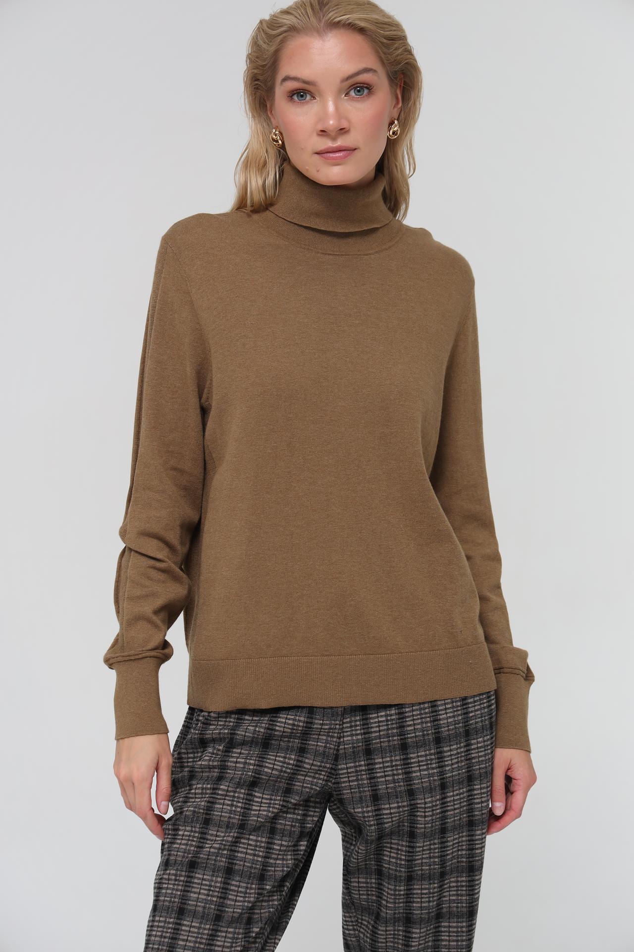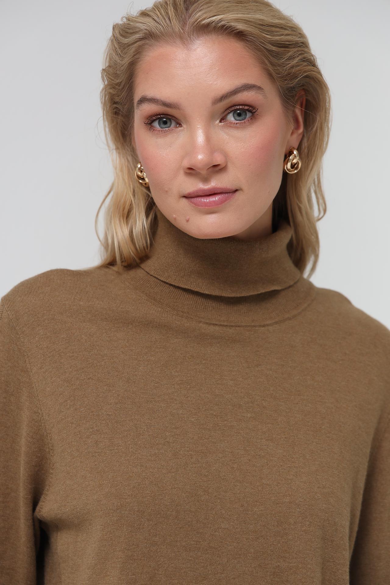 Водолазка Pezzo, коричневая, базовый трикотажный свитер