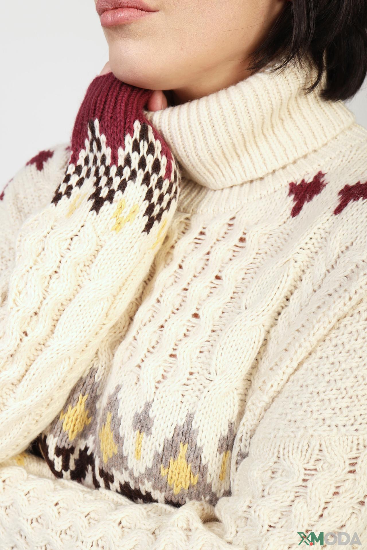- Уникальный дизайн. Водолазка украшена выразительными косами и контрастными жаккардовыми узорами, создающими неповторимый образ.